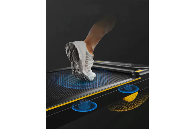 UREVO Strol 2E ponúka bežeckú plochu s rozmermi 102 × 38 cm, ktorá poskytne dostatok priestoru na chôdzu i beh. Systém odpruženia pomáha tlmiť nárazy pri došliapnutí. Trenažér disponuje motorom s maximálnym výkonom 2,5 HP, ktorý umožňuje nastaviť rýchlosť od 1 do 10 km/h. To zodpovedá plnohodnotnému využitiu – na chôdzu alebo mierny klus.