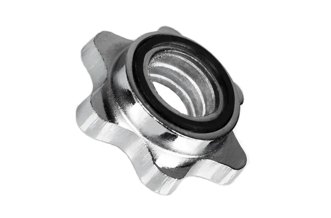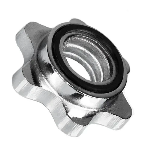 Maticový bezpečnostný uzáver na činku slúží na zaistenie kotúčov na činke. Uzáver je určený pre osi s priemerom 25 mm. Jednoduchým našróbovaním uzáveru zaistíte kotúče na ose činky, gumový doraz zaistí pevné dotiahnutie a zvýši komfort pri cvičení s činkou.
