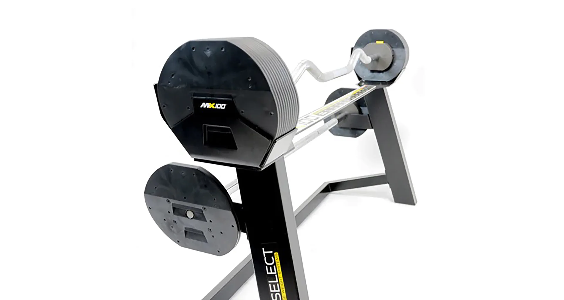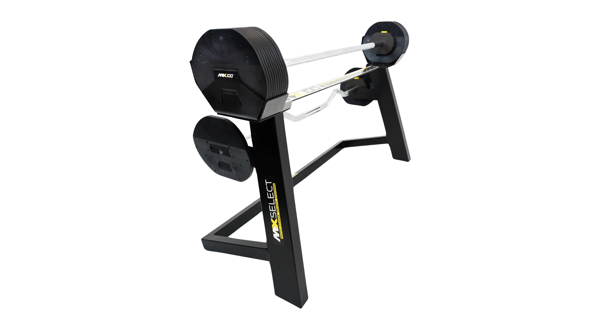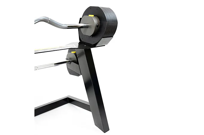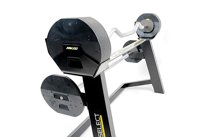 Model Rapid Change Barbell System MX Select umožňuje jednoduchý výber hmotnosti otočením voliča. Po dokončení cvičenia je možné celú sadu uskladniť do špeciálneho stojana, ktorý je kompaktný a elegantný, ideálny doplnok do domácej posilňovne.