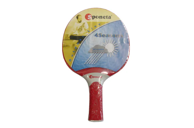 Pálka na stolný tenis SPONETA 4Seasons - je univerzálna pálka na celoročné použitie vo vonkajších podmienkach spolu s vonkajšími stolmi. Ide o typ pálky odolný voči poveternostným vplyvom. Pálka je určená na univerzálne použitie v exteriéri aj interiéri. Je vyrobený zo špeciálnych zmesí plastu a polyuretánu, a preto je odolný voči všetkým poveternostným podmienkam. Dokonale sa hodí ako doplnok pre vonkajšie stoly. Zachováva si vlastnosti kvalitnej rekreačnej palice na úrovni 4 hviezdičiek. Balené v zmršťovacej fólii.