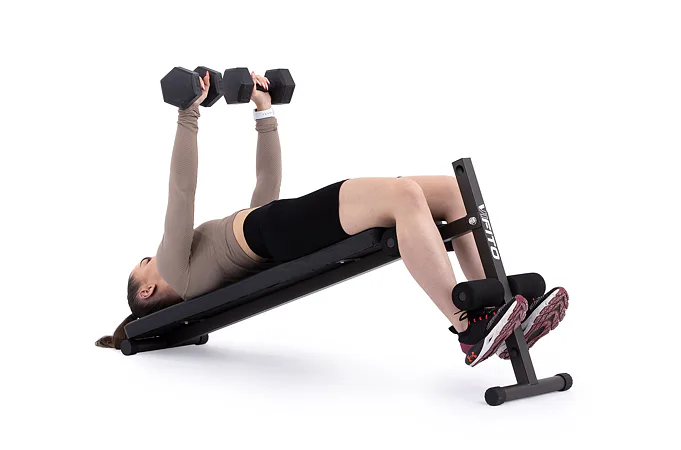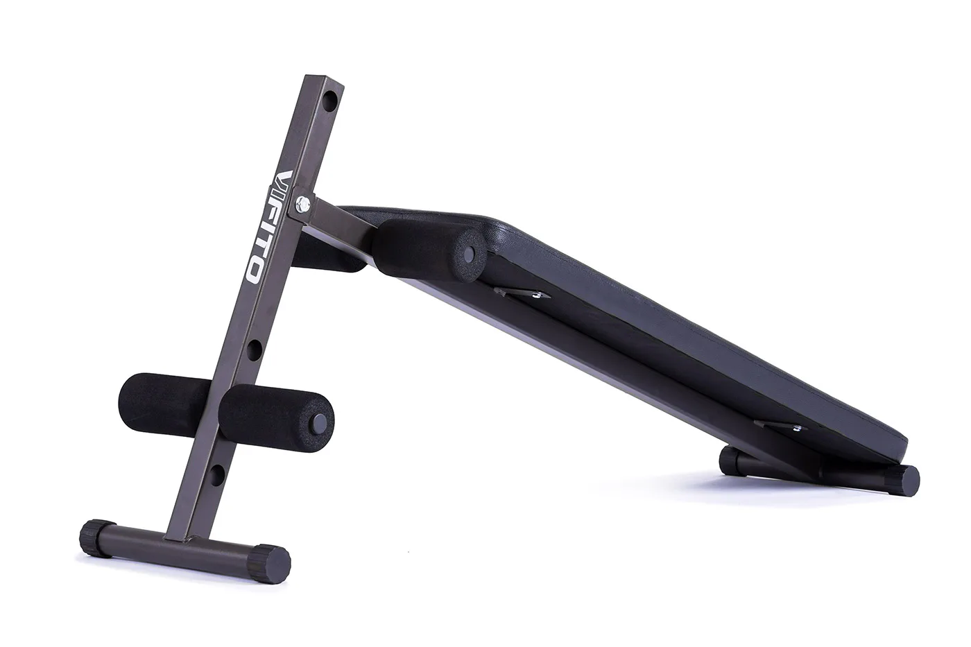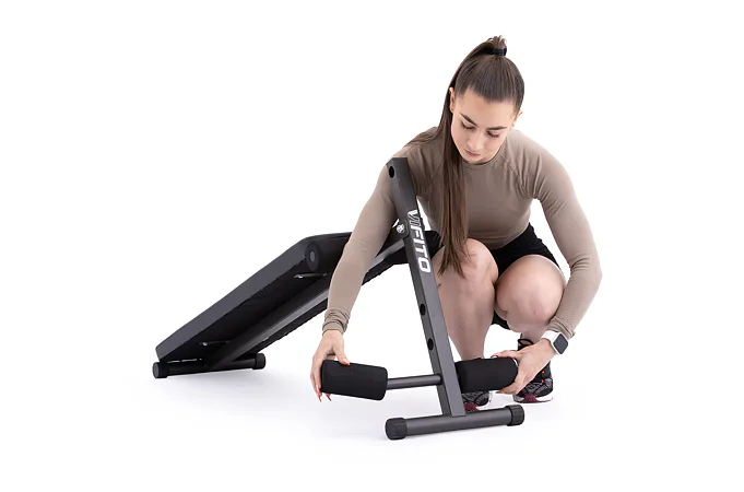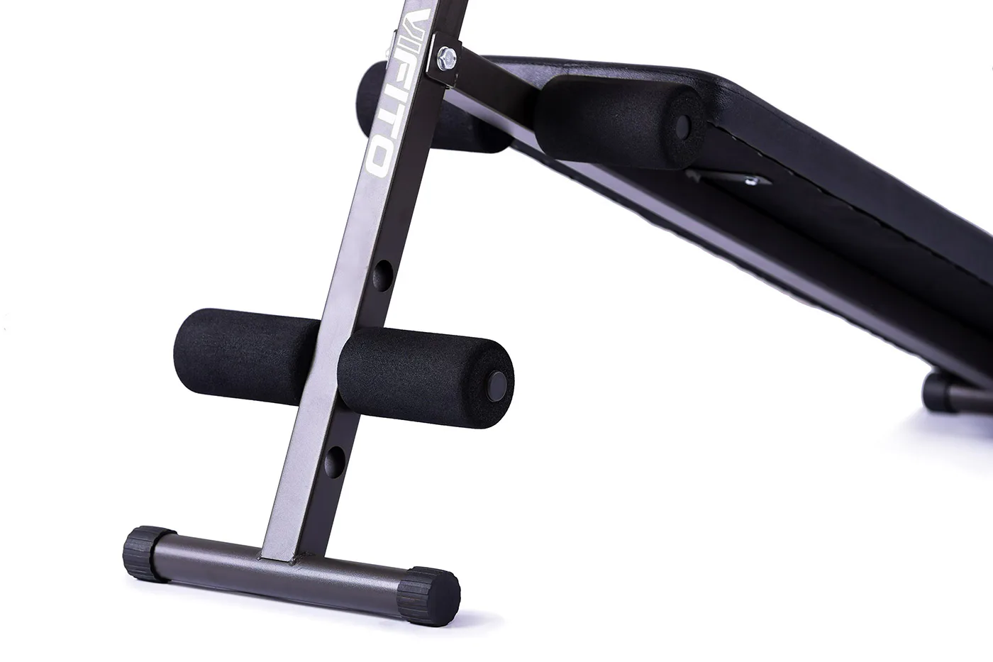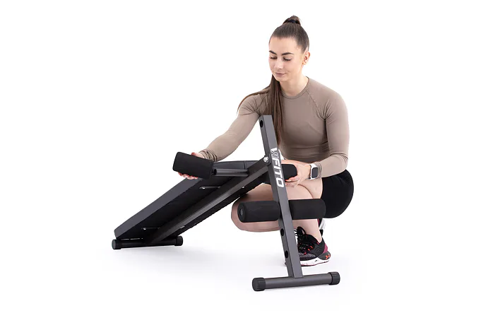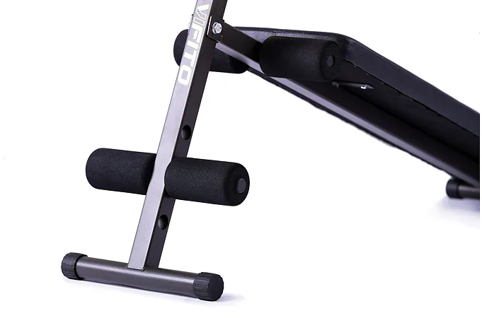 Posilovací lavice VIFITO A20 je šikmá lavice na cvičení břišních svalů s možností jednoduchého nastavení opěrek pro nohy. Oproti konkurenčním produktům lze u VIFITO A20 pěnové válce pro zapření nohou nastavit až ve 3 polohách! Přizpůsobí se tak výšce každého uživatele.