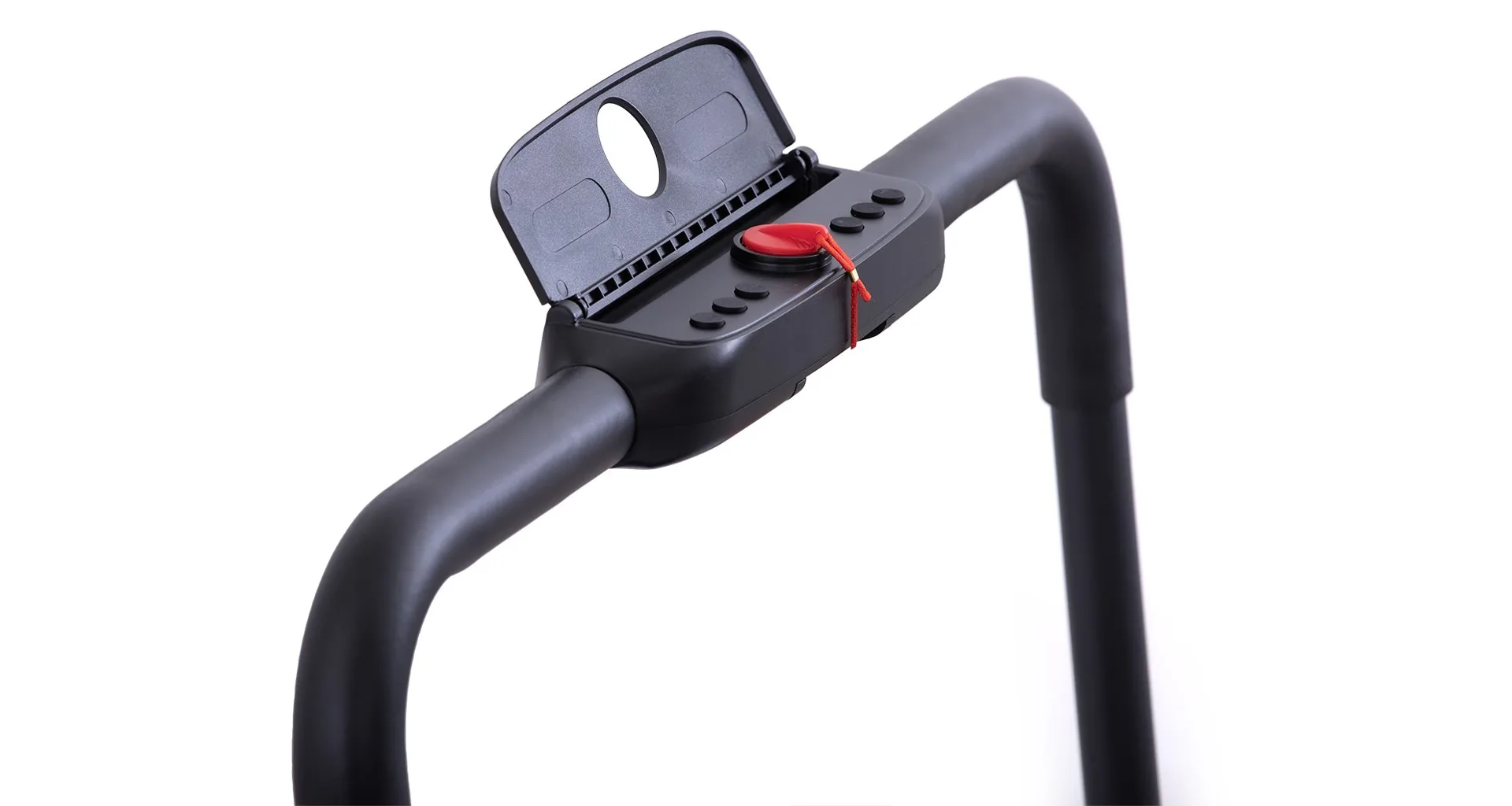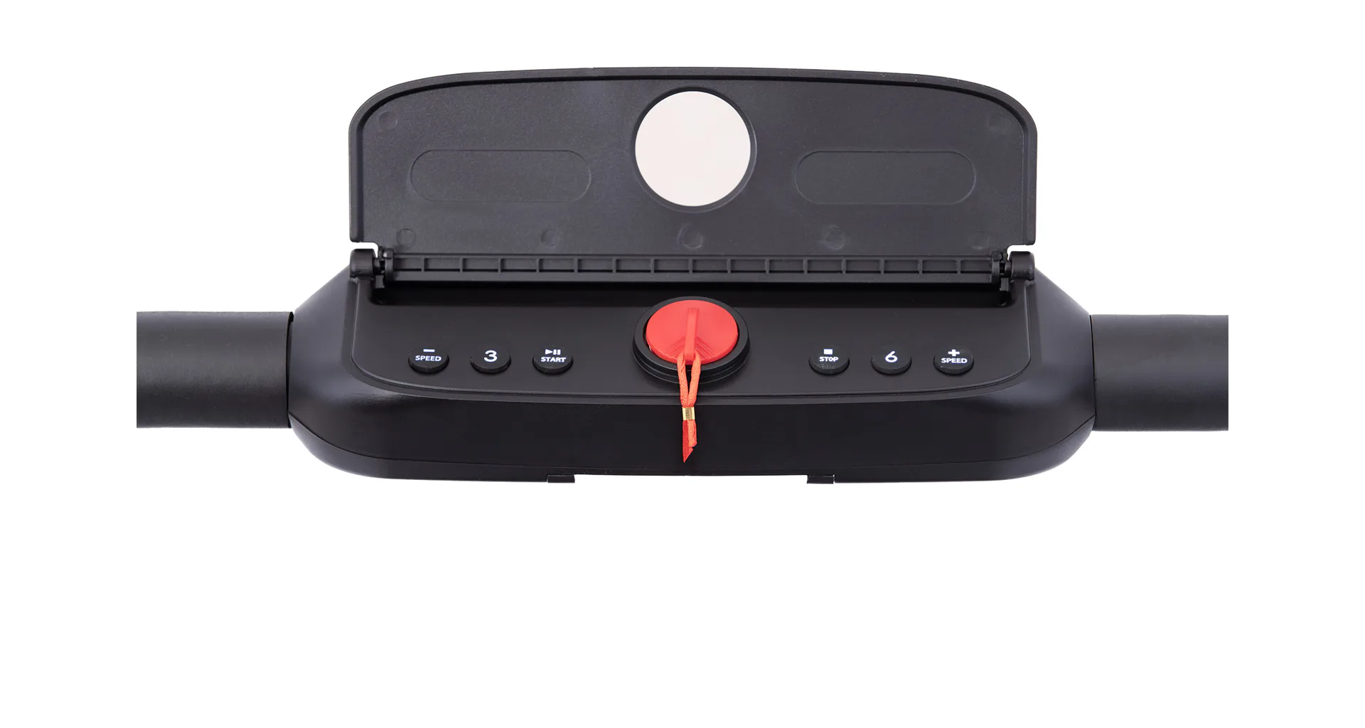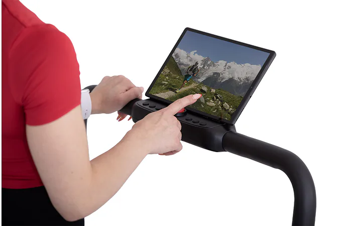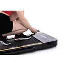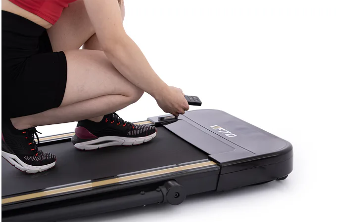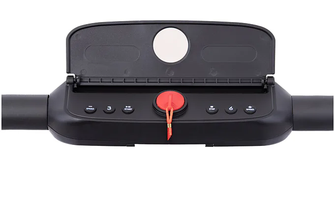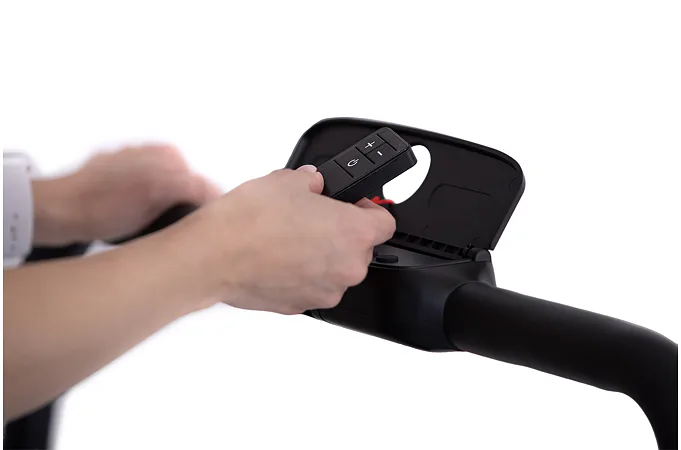 Rychlost běhu si můžete nastavovat během tréninku ručně tlačítky na panelu, nebo pomocí dálkového ovladače. Bezpečnost při chůzi/běhu zaručuje sklopné madlo, na kterém se zároveň nachází ovládací konzole.