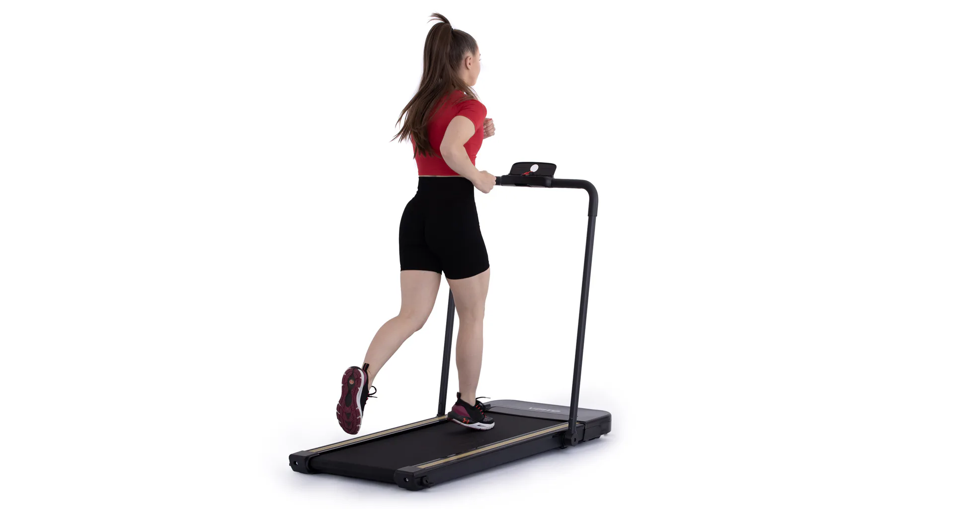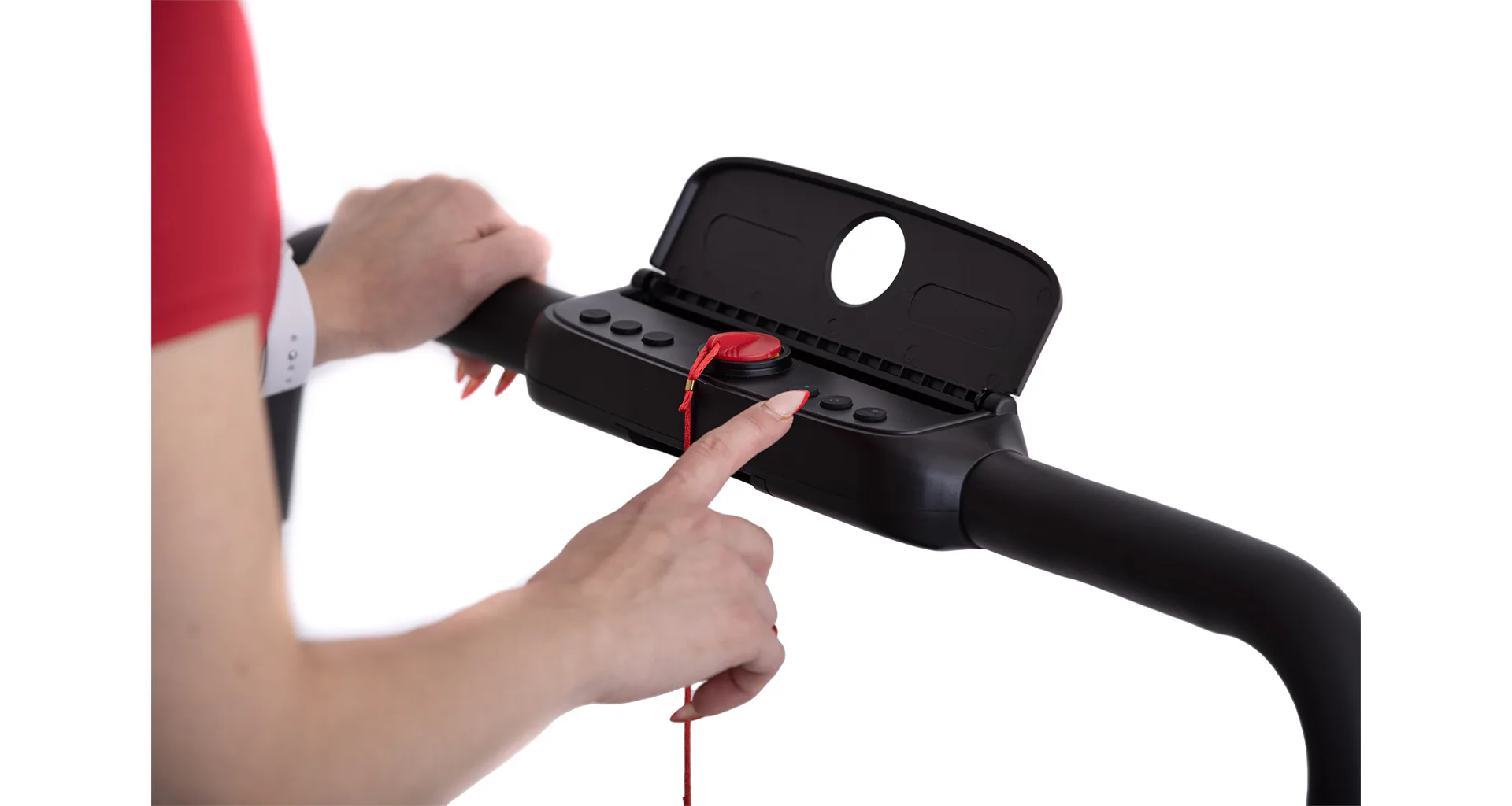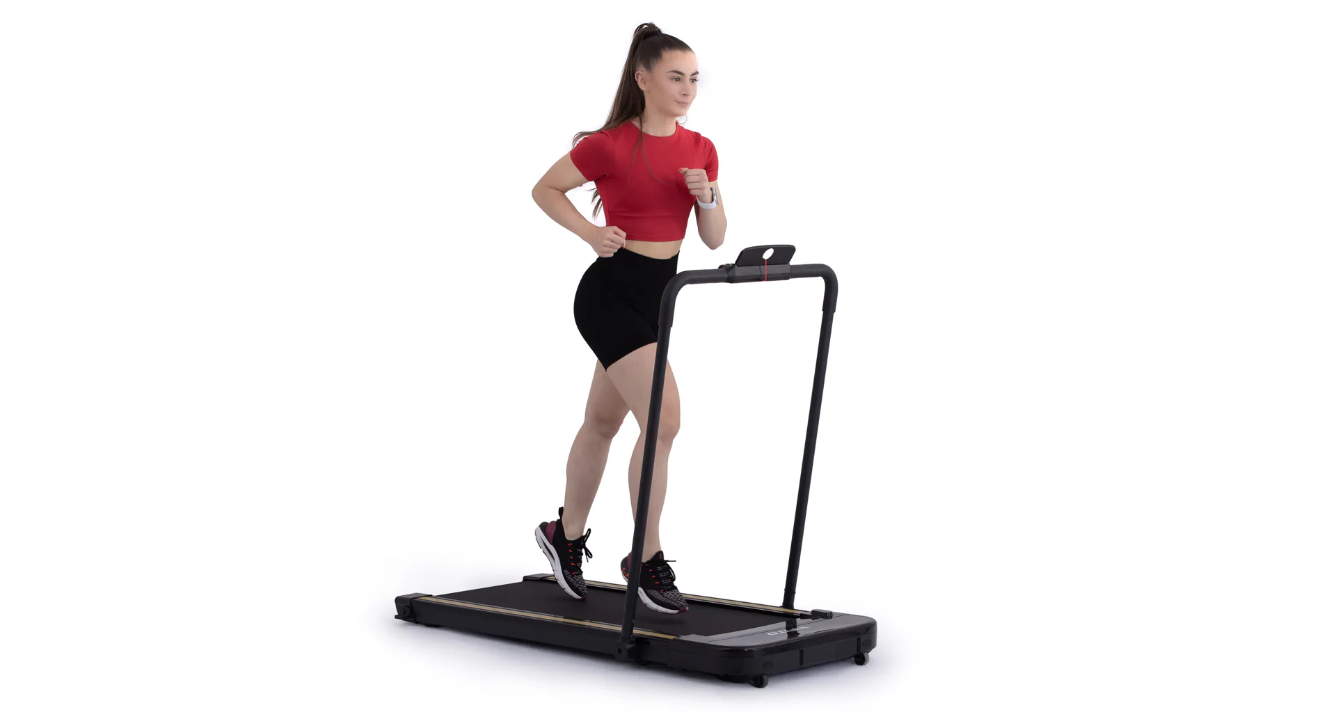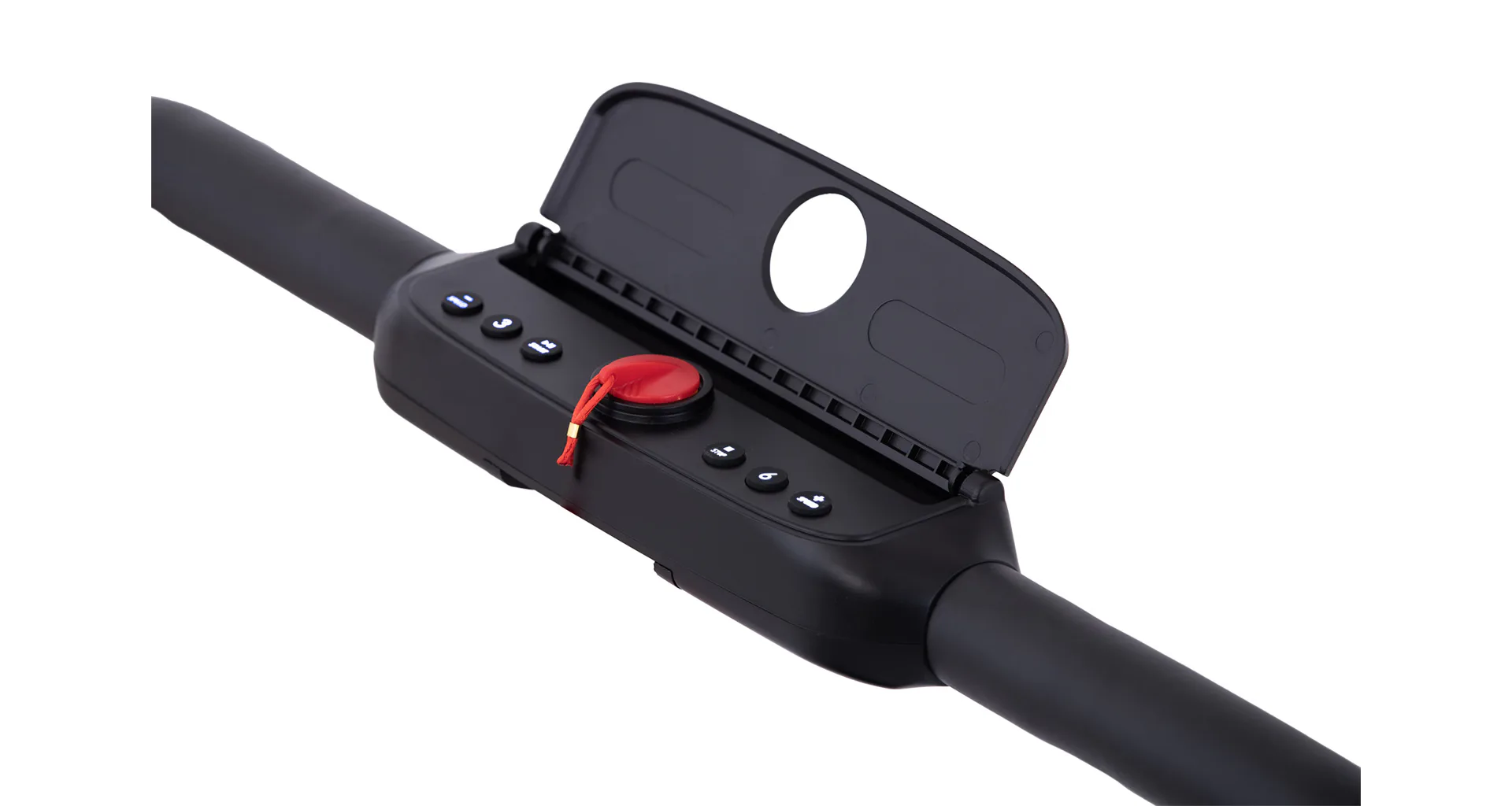 Rychlost běhu si můžete nastavovat během tréninku ručně tlačítky na panelu, nebo pomocí dálkového ovladače. Bezpečnost při chůzi/běhu zaručuje sklopné madlo, na kterém se zároveň nachází ovládací konzole.