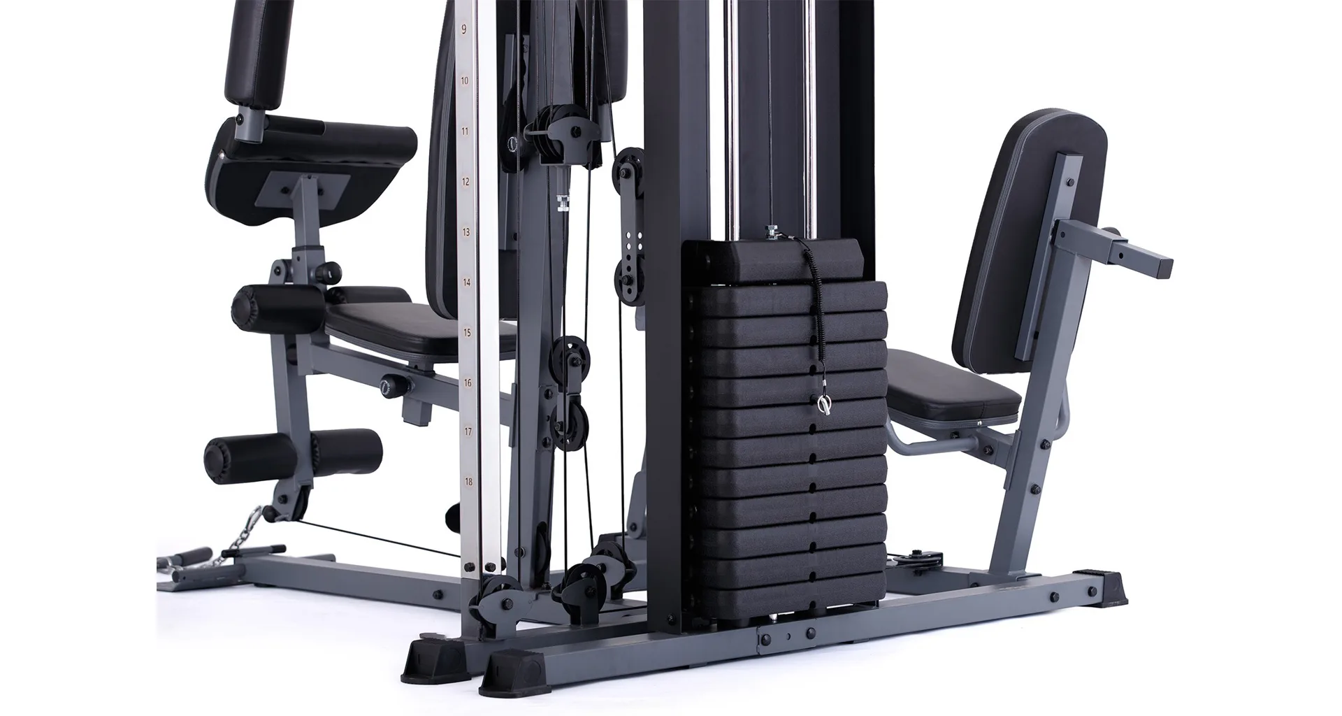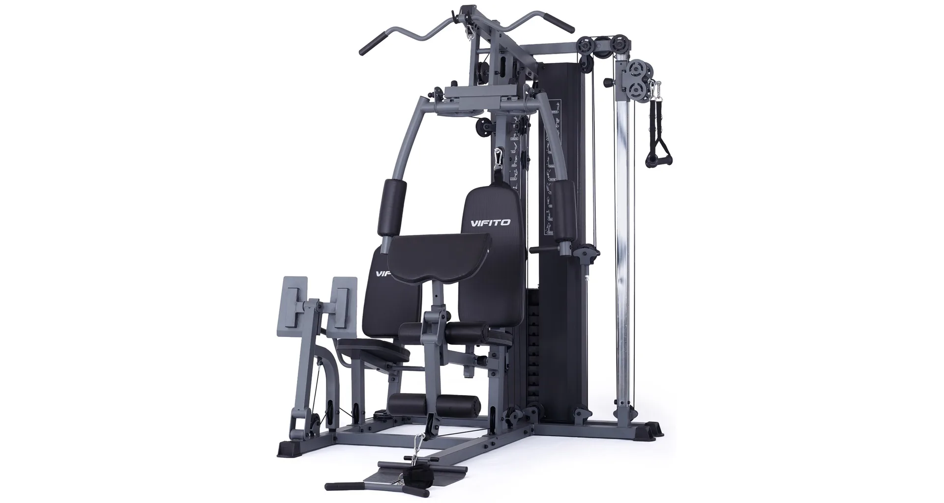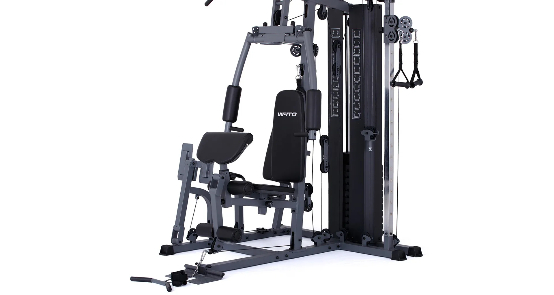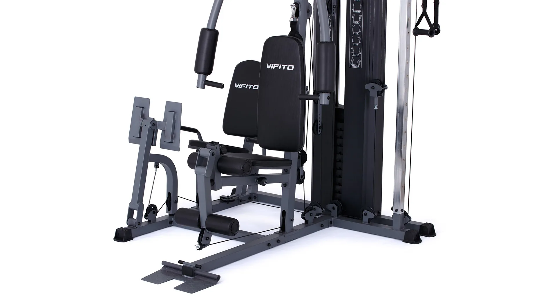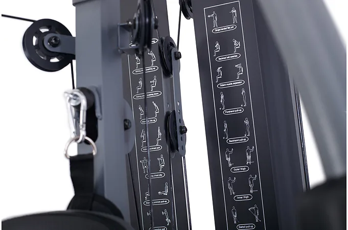 Posilovací věž VIFITO Gama 85 umožňuje díky řadě adaptérů na malé ploše procvičit přes 50 různých cviků na všechny svalové partie. K nejoblíbenějším patří cviky jako tlaky v sedě, stahování horní / spodní kladky, motýlek na prsní svaly, veslování na spodní kladce, biceps ve stoje či v sedě, předkopávání, zakopávání na nohy, cviky na šikmé lavici a legpress! Nosnost stroje je 150 kg!