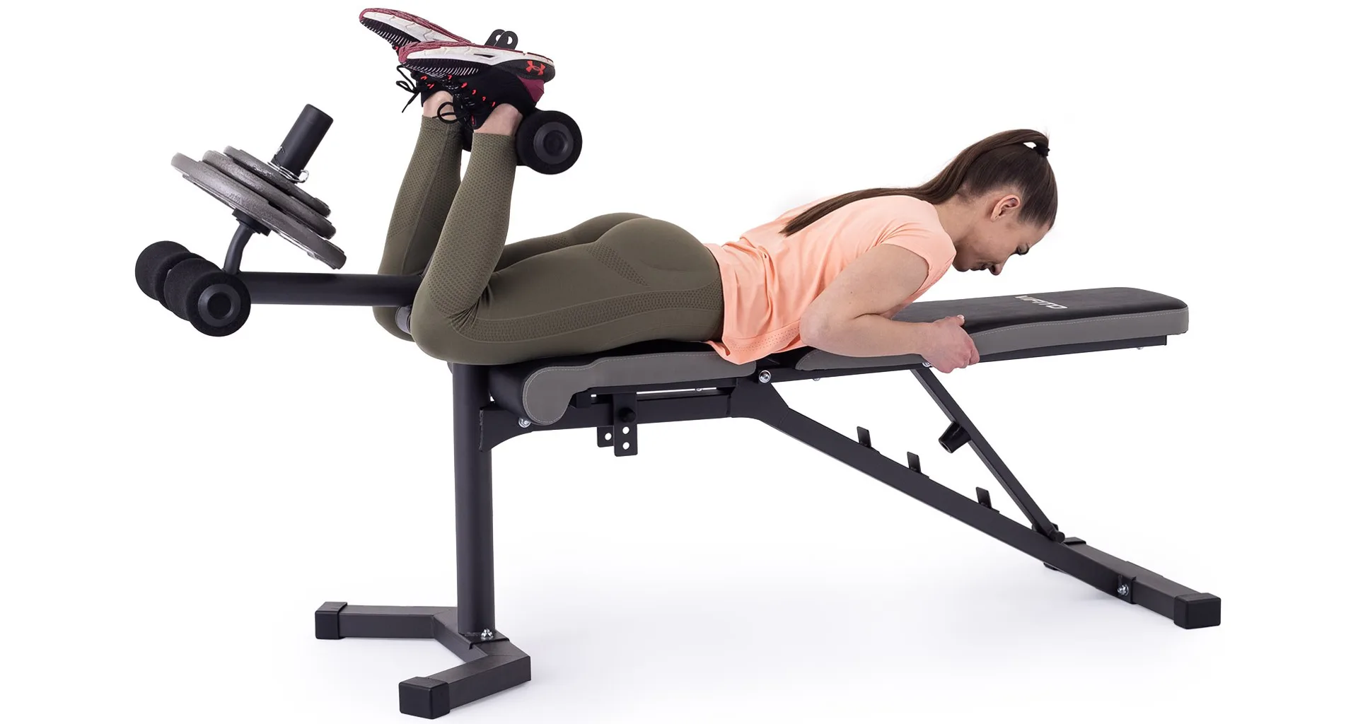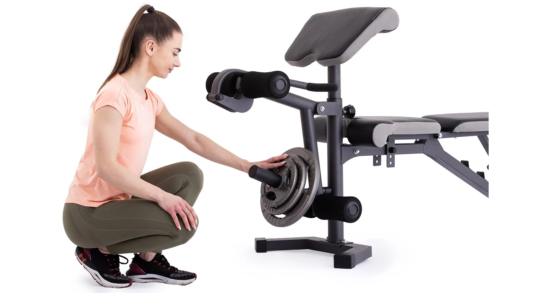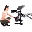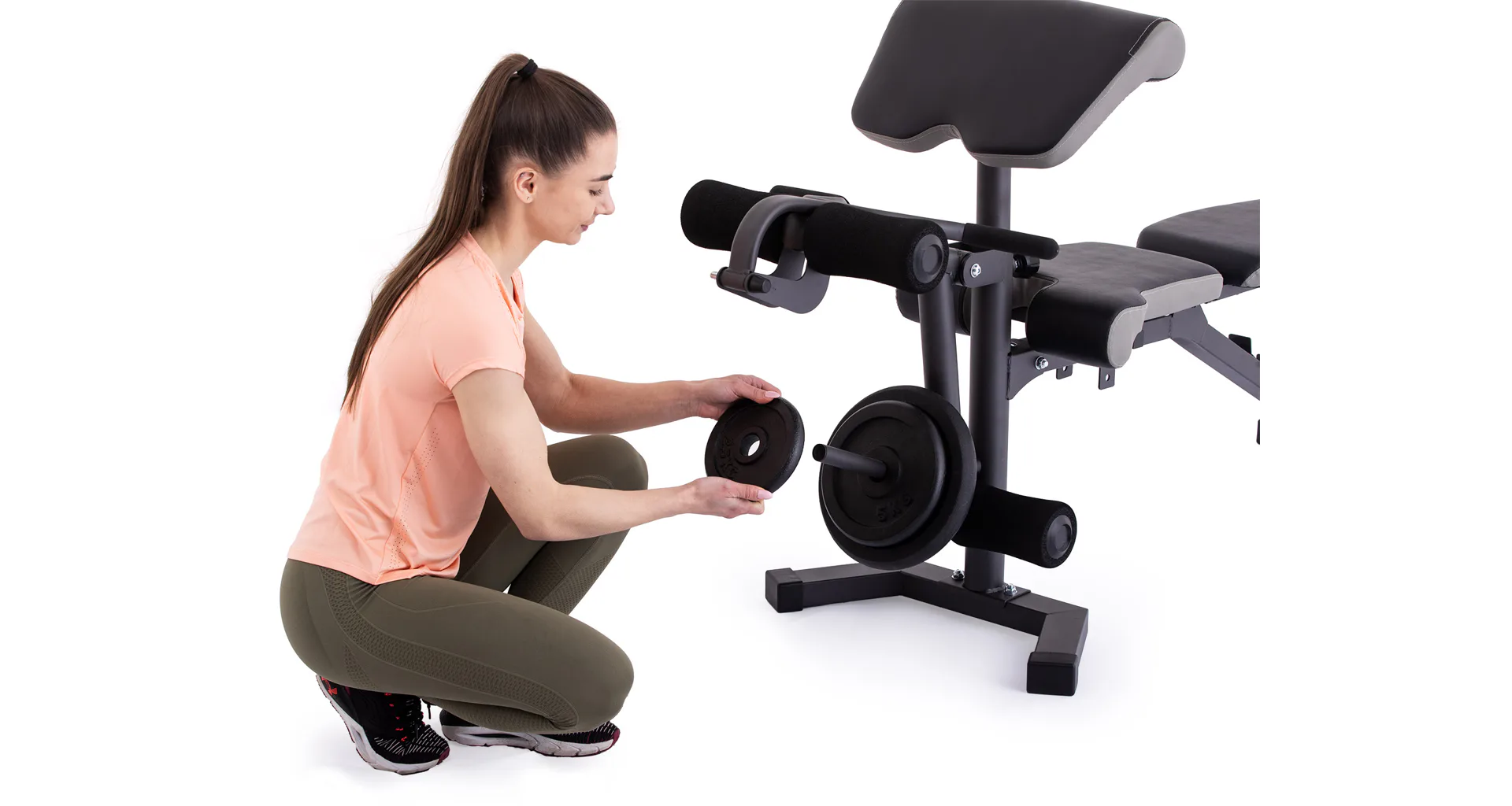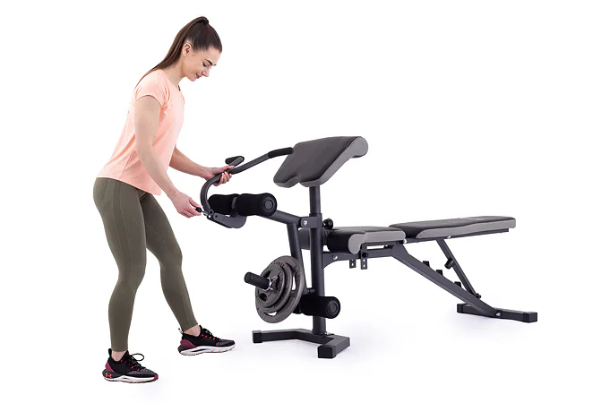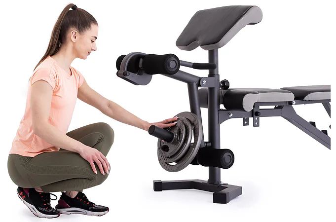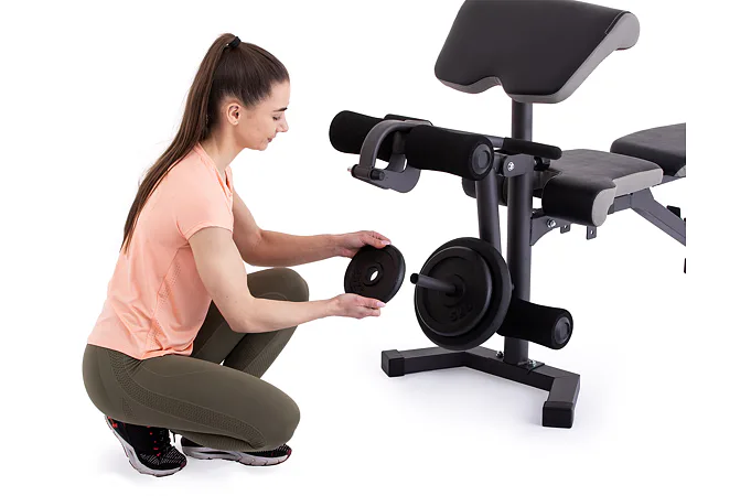 Vyobrazené kotouče a osa na volnou činku nejsou součástí dodávky, lze je dokoupit.