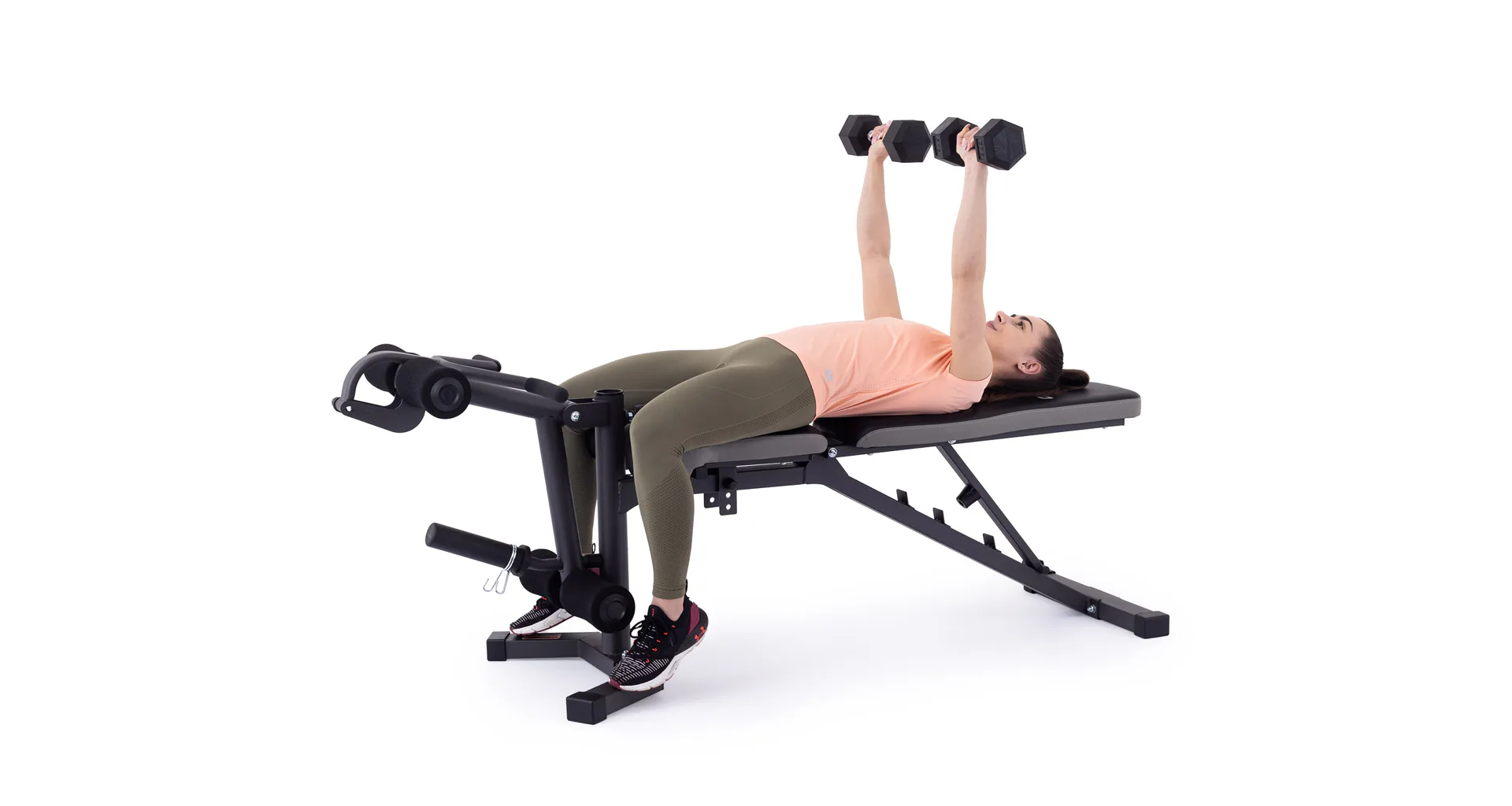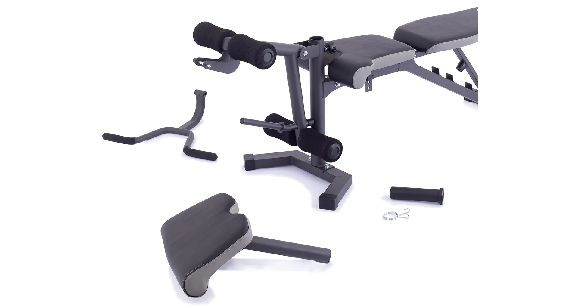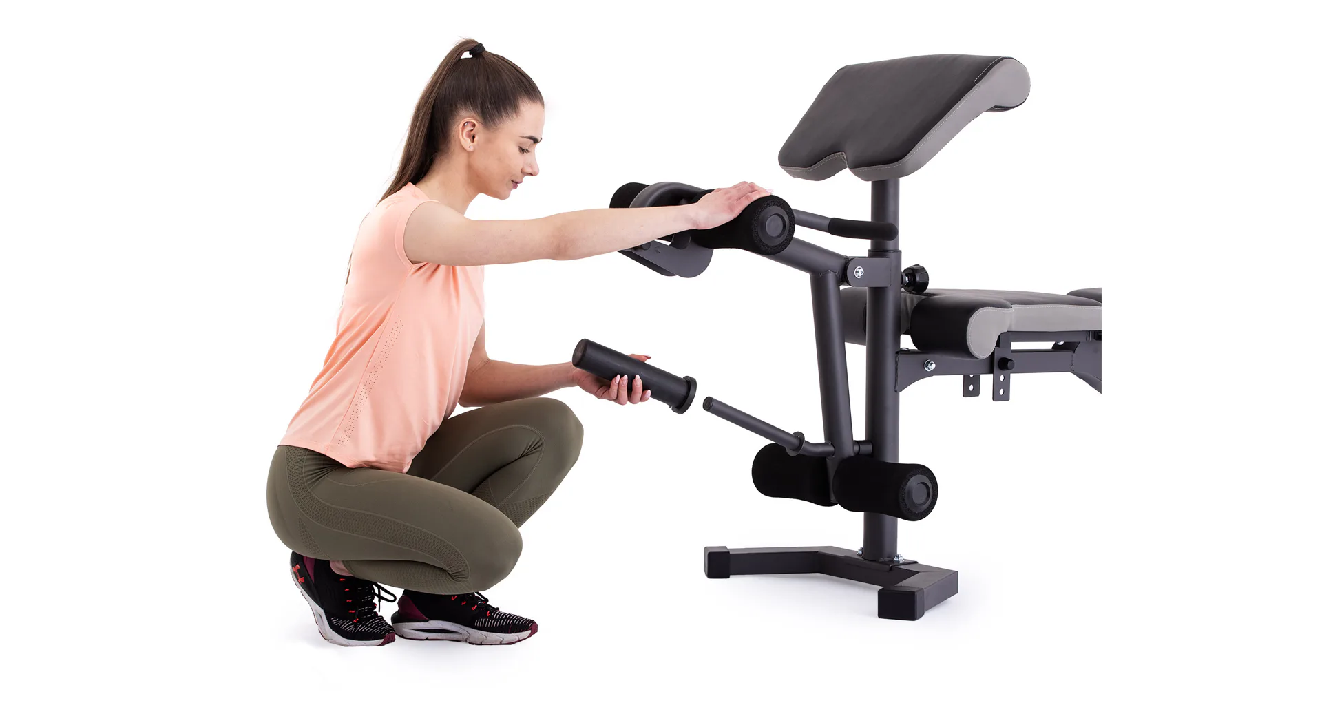 Vyobrazené kotouče a osa na volnou činku nejsou součástí dodávky, lze je dokoupit.