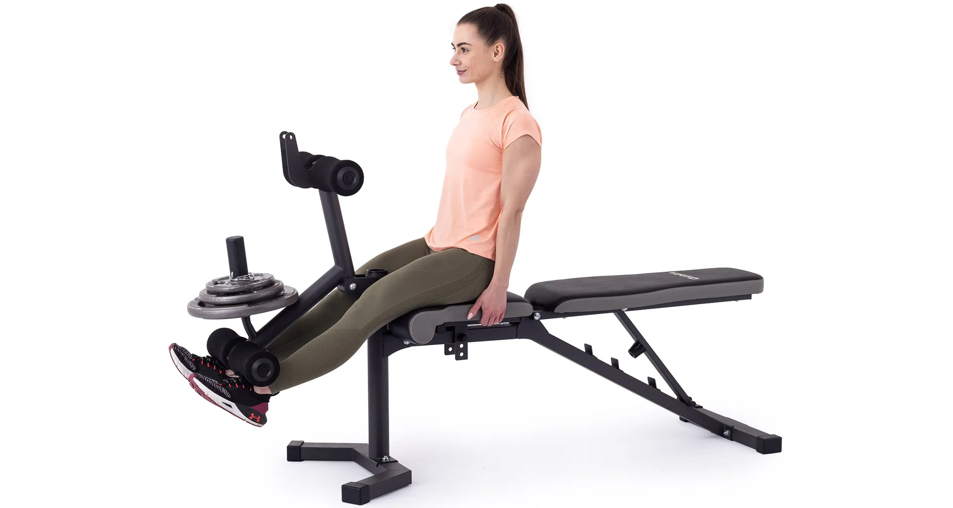 Po stranách konstrukce jsou 2 odkládací trny na kotouče. Díky stabilní konstrukci a bezpečnostním zarážkám je cvičení bezpečné a pohodlné.
