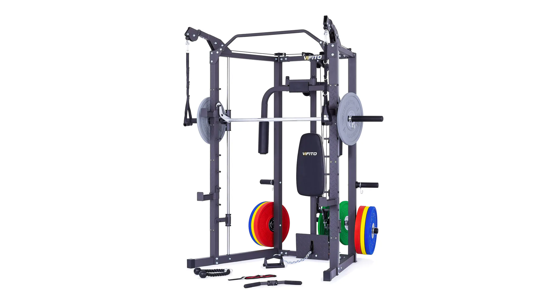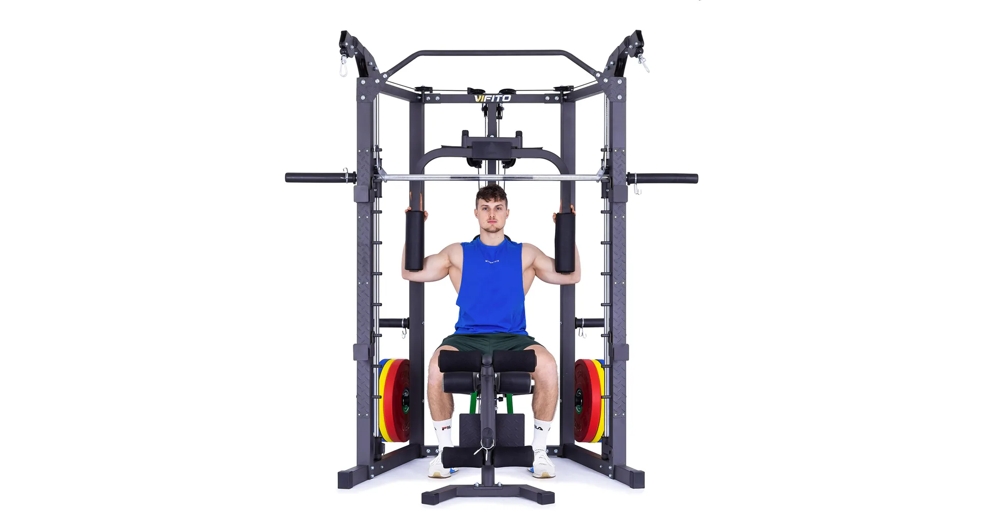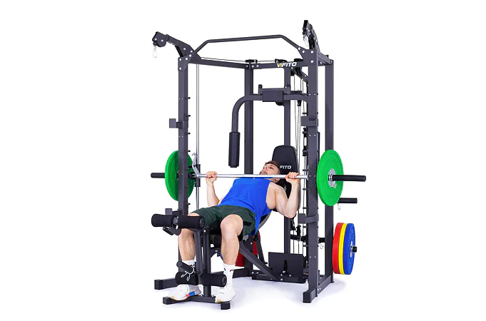 Model VIFITO Omega S40B je oblíbená sestava složená z univerzálního multipressu pro náročné VIFITO Omega S40 a posilovací lavice VIFITO U60.
