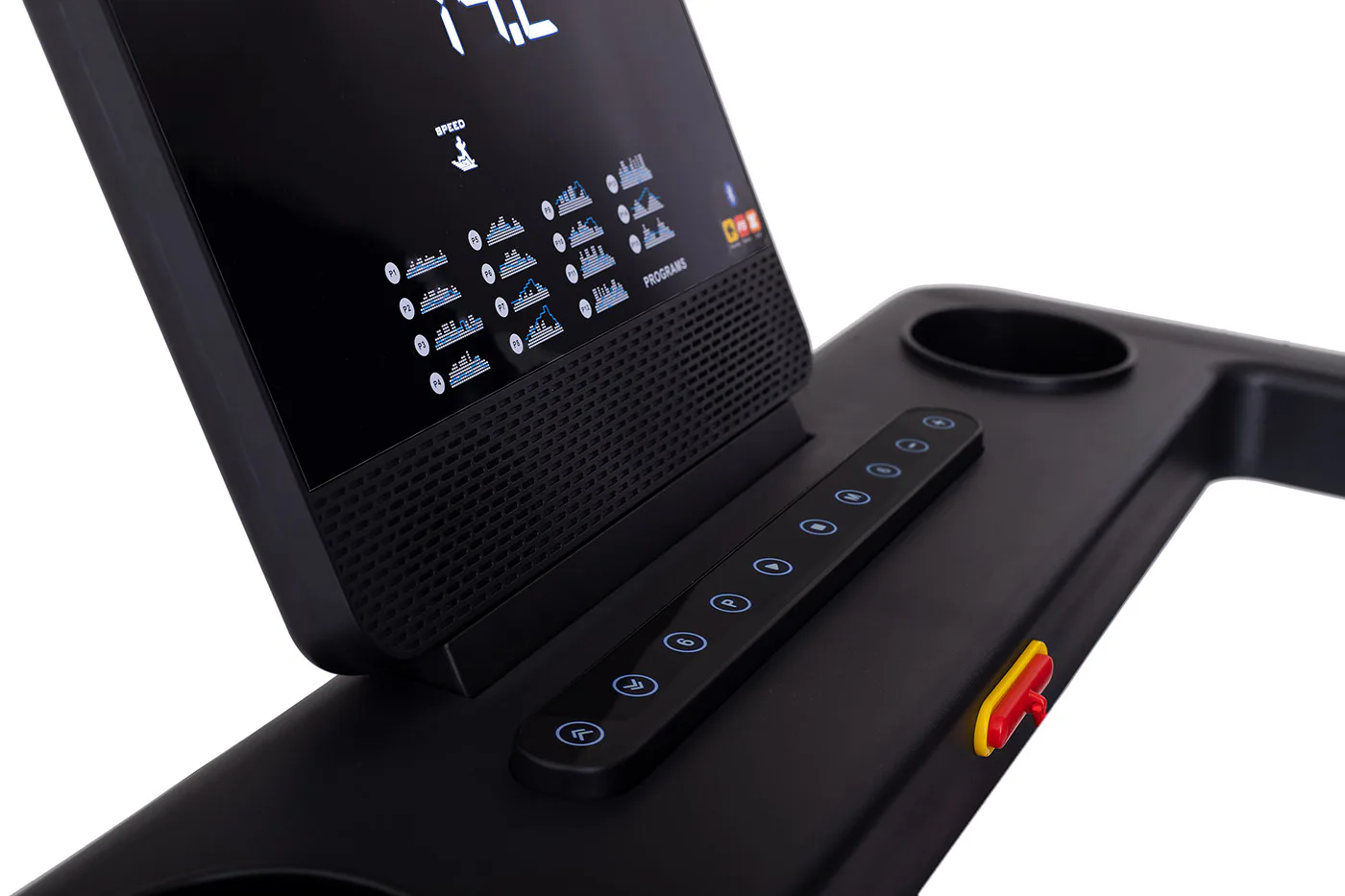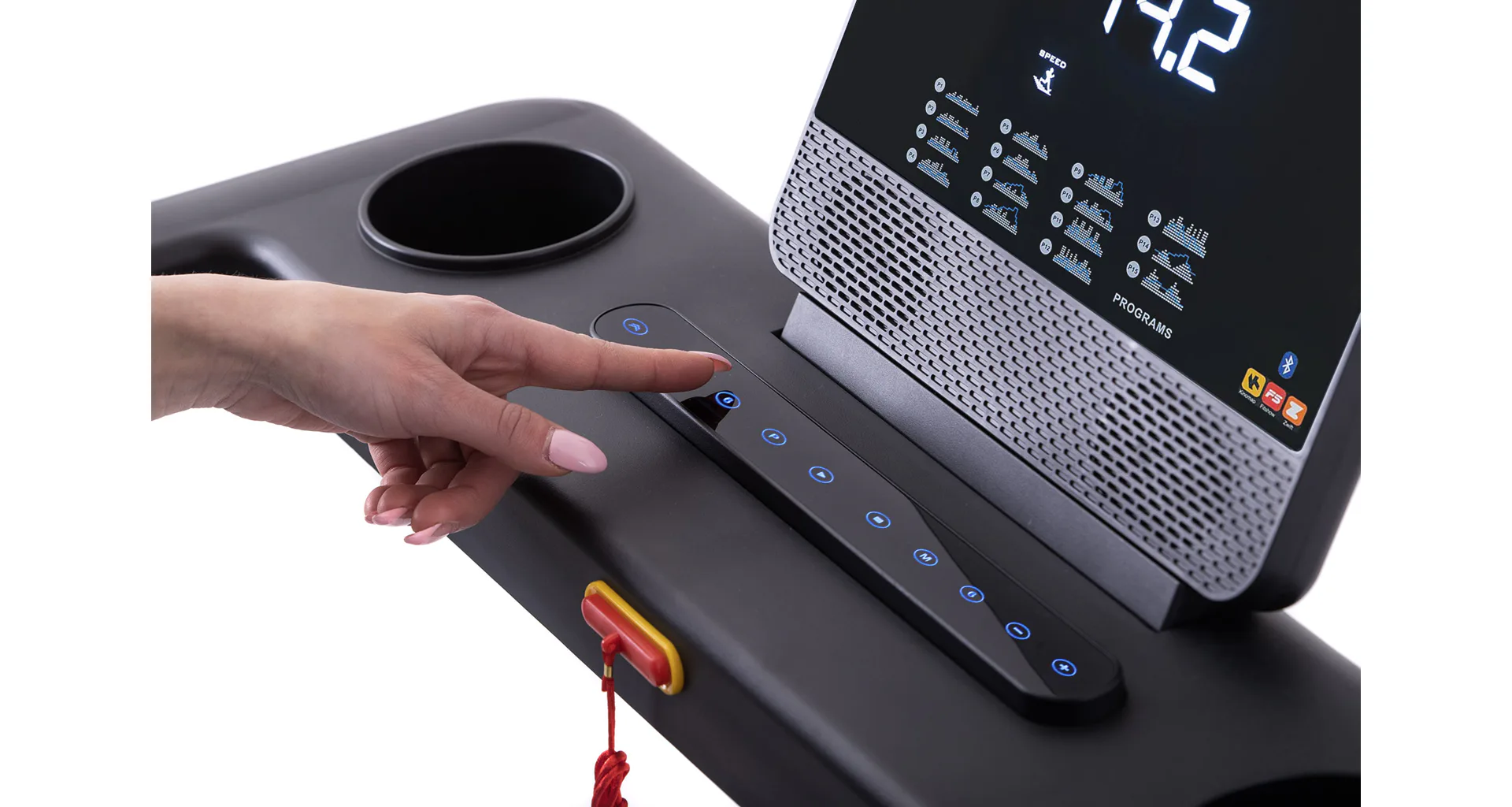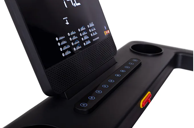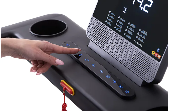 Rychlost běhu a sklon si můžete nastavovat během tréninku ručně tlačítky, případně si můžete si vybrat některý z 15 přednastavených tréninkových programů. Pro maximální efektivitu tréninku můžete využít měření tepové frekvence skrz dlaňové snímače tepové frekvence.