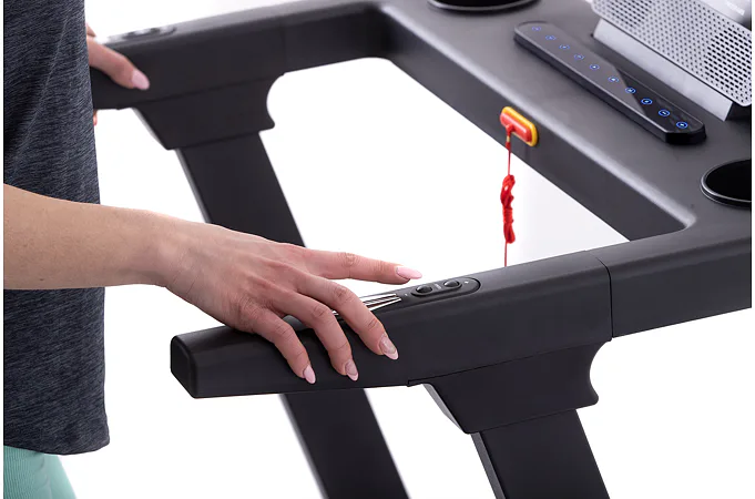 Pokud běžecký pás zrovna nepoužíváte, můžete jej jednoduše sklopit a ušetřit tak až 60% místa. Sklopení a manipulaci s pásem usnadňují i transportní kolečka.