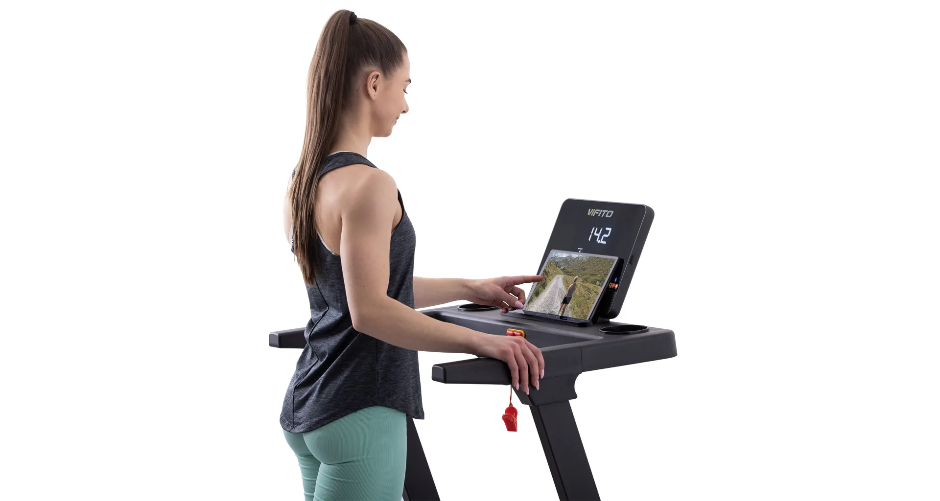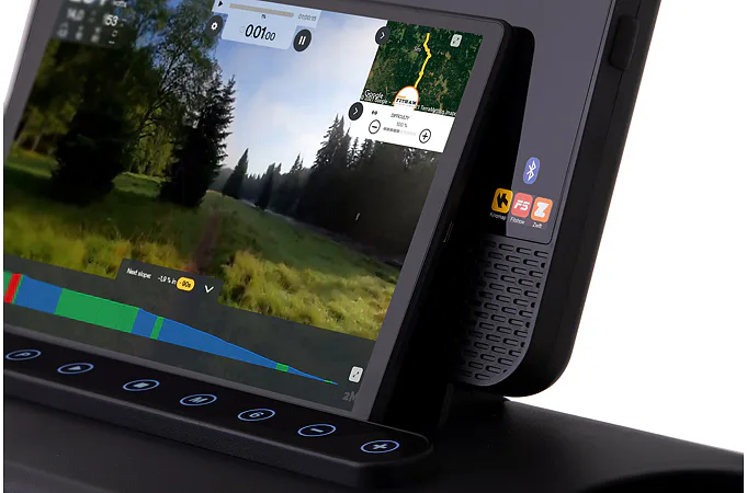 Díky funkci Bluetooth můžete využívat tréninkové aplikace. Vyobrazený tablet není součástí dodávky.