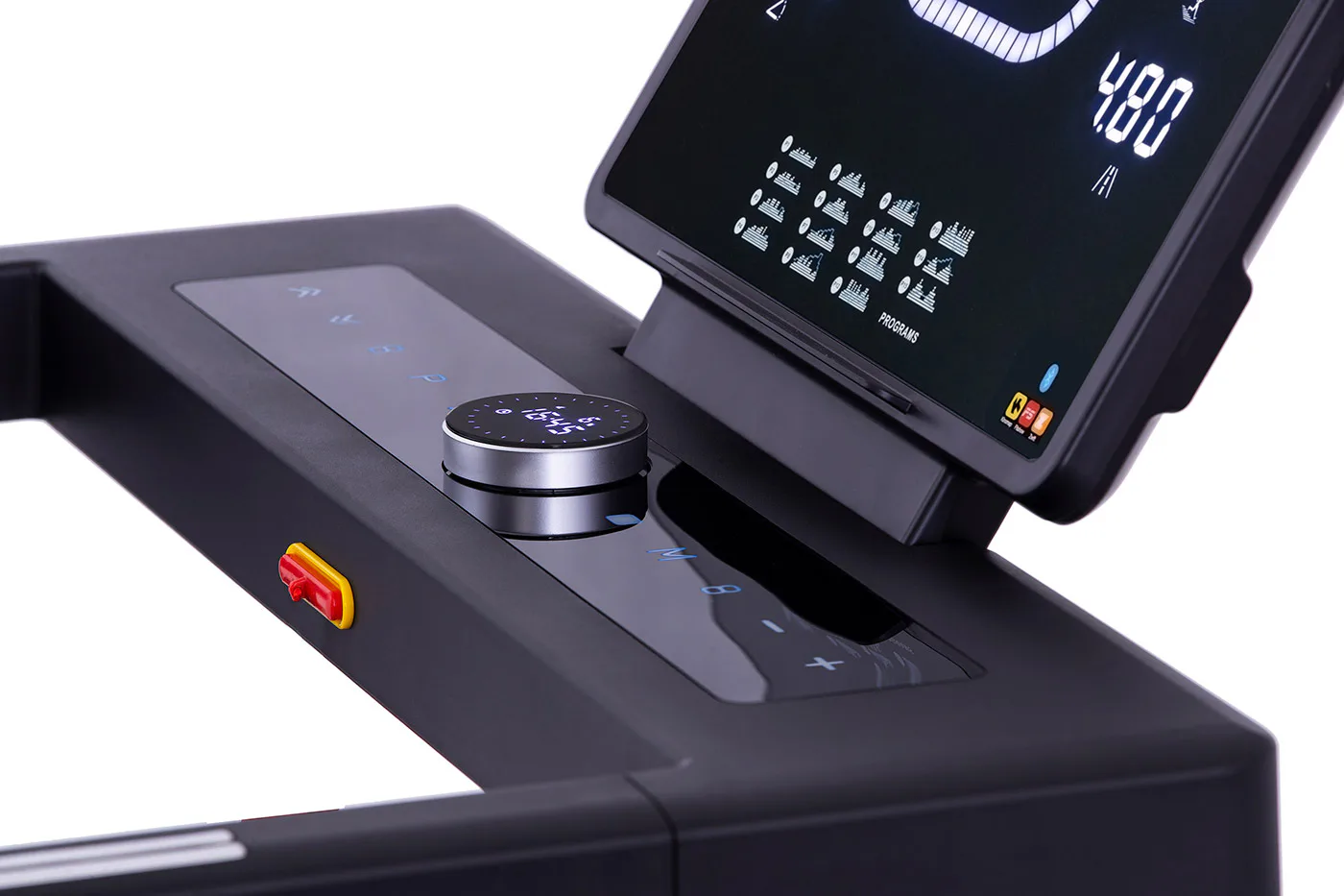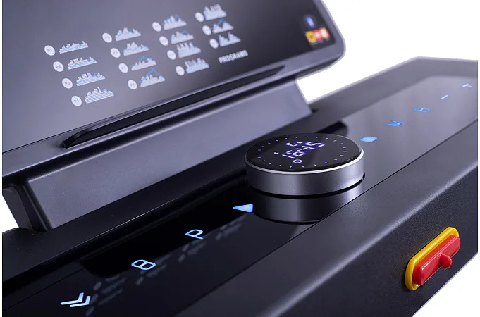 Rychlost běhu a sklon si můžete nastavovat během tréninku ručně tlačítky, případně si můžete si vybrat některý z 15 přednastavených tréninkových programů. Pro maximální efektivitu tréninku můžete využít měření tepové frekvence skrz dlaňové snímače tepové frekvence.