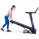 Pokud běžecký pás zrovna nepoužíváte, můžete jej jednoduše sklopit a ušetřit tak až 60% místa. Sklopení a manipulaci s pásem usnadňují i transportní kolečka.
