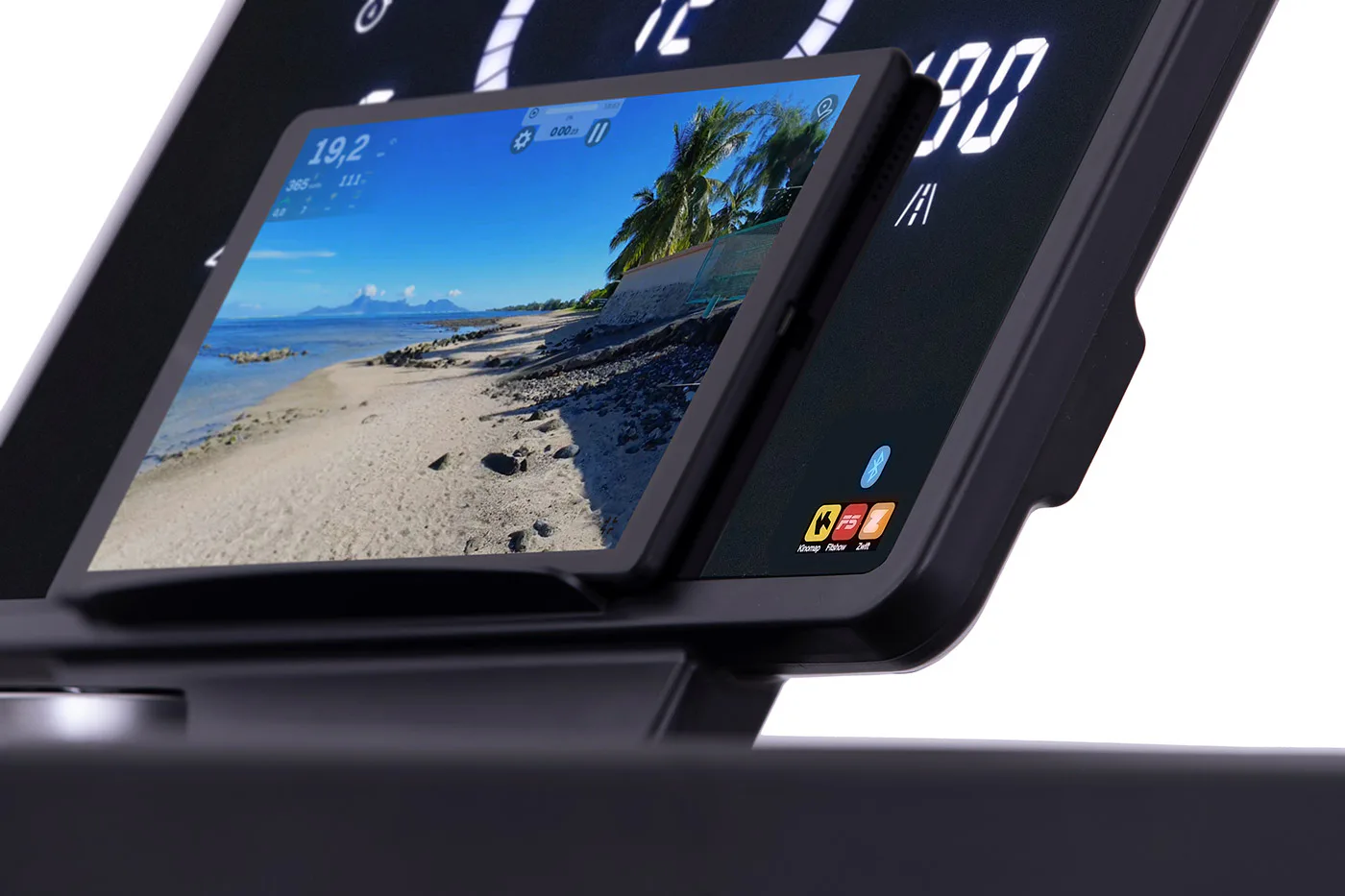 Díky funkci Bluetooth můžete využívat tréninkové aplikace a perfektně si tak zpestřit trénink. Vyobrazený tablet není součástí dodávky.