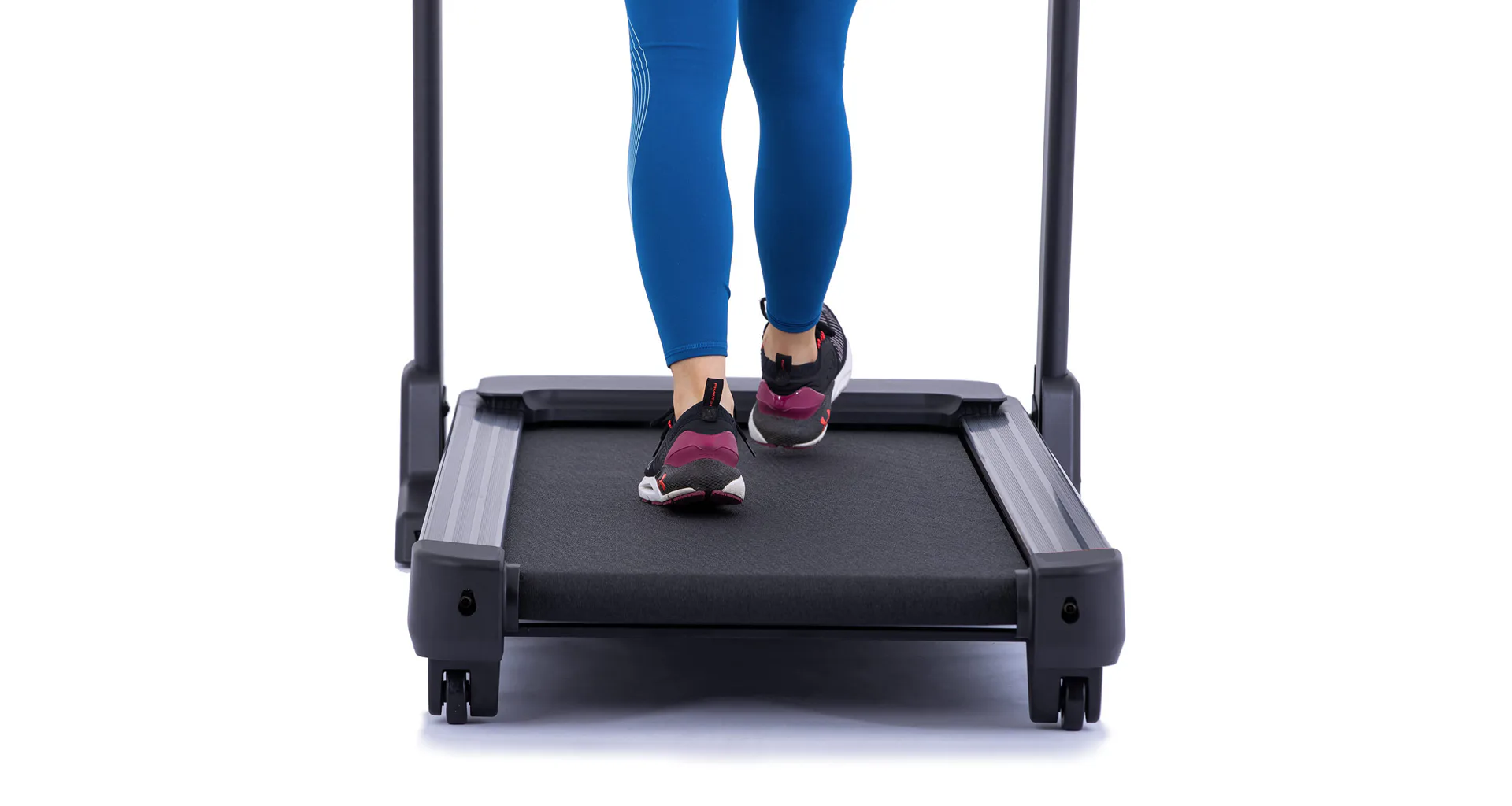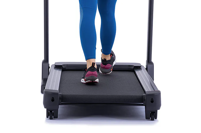 Pokud běžecký pás zrovna nepoužíváte, můžete jej jednoduše sklopit a ušetřit tak až 60% místa. Sklopení a manipulaci s pásem usnadňují i transportní kolečka.