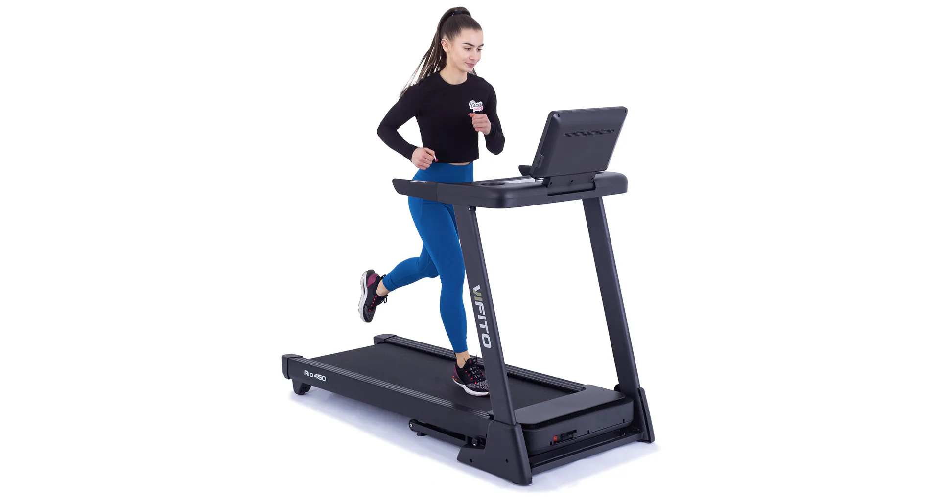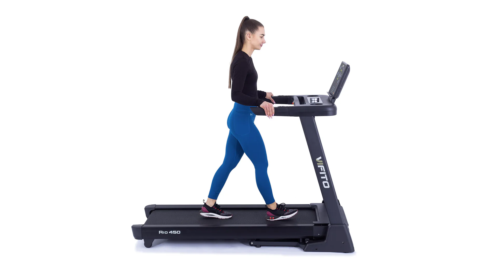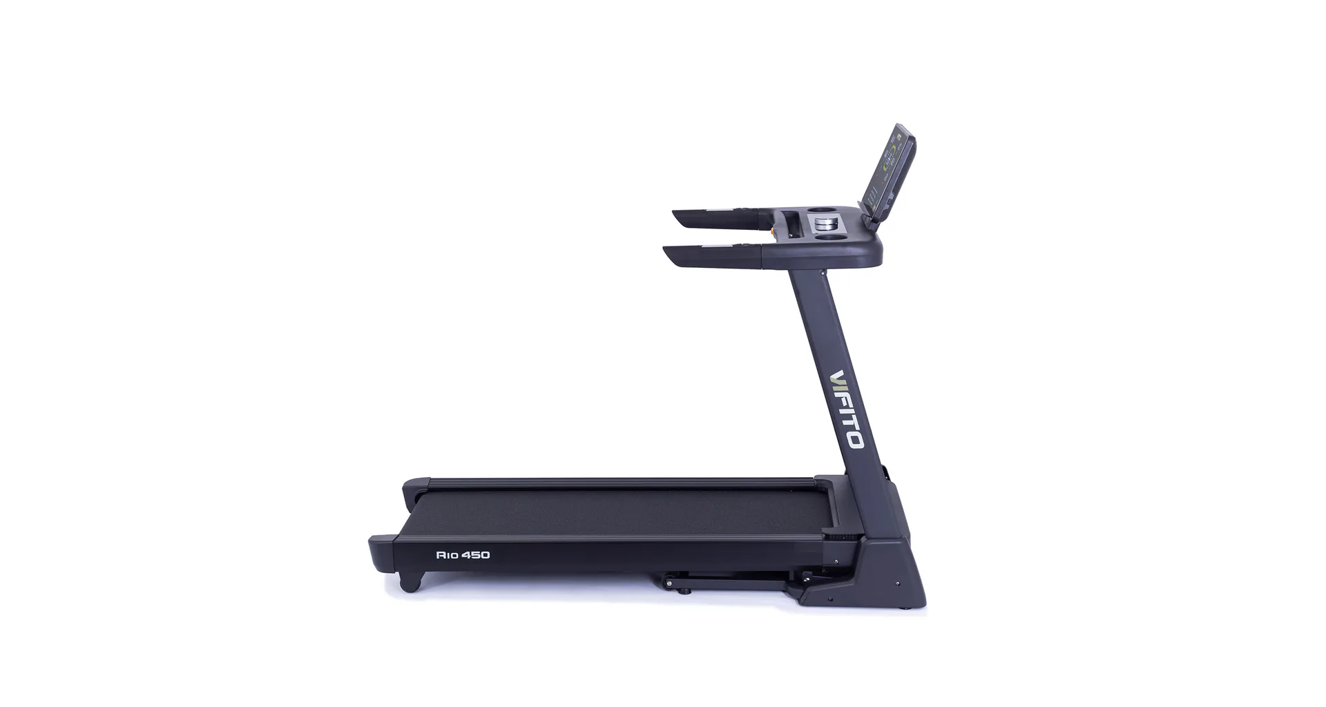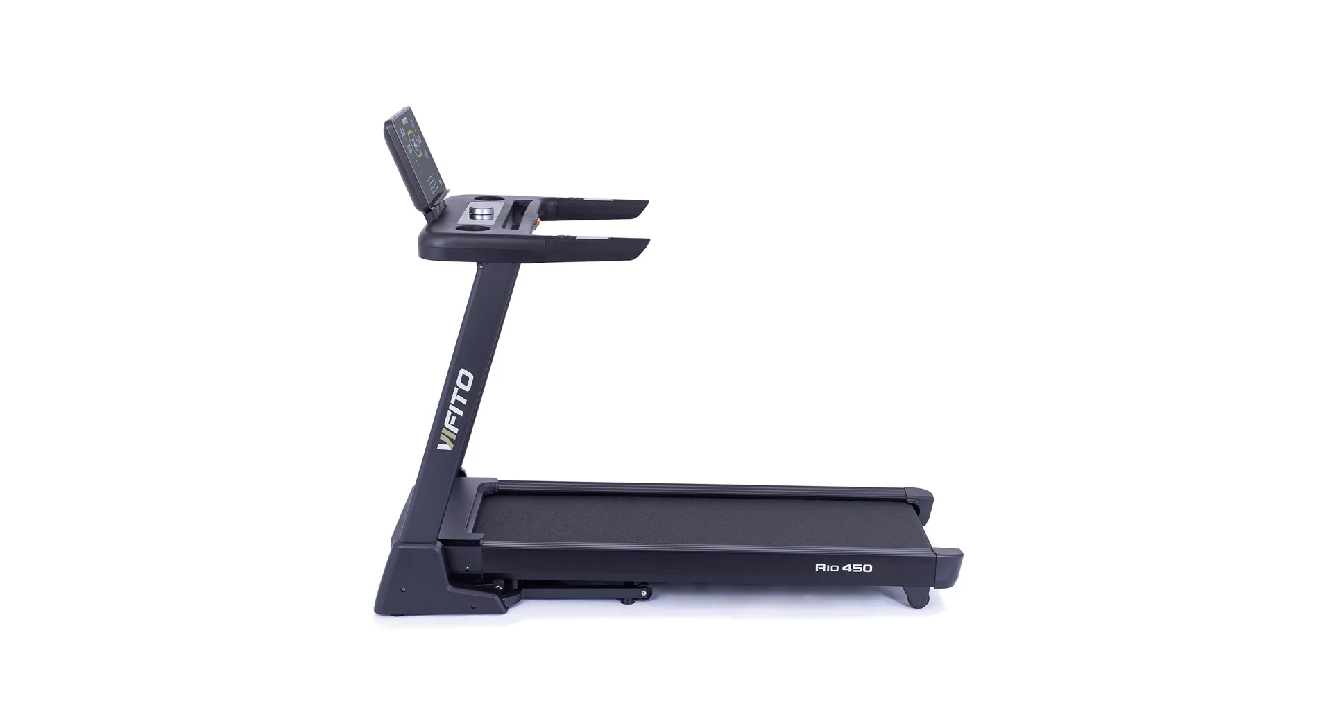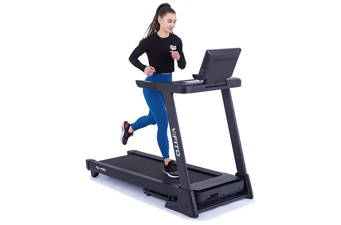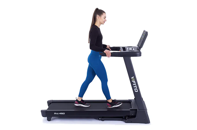 VIFITO Rio 450 nabízí prostornou běžeckou plochu s rozměry 130 x 48 cm. Tato plocha pro běh bohatě postačí lidem přibližně do 175 cm, kde poskytuje dostatek prostoru pro pohodlný a přirozený krok.