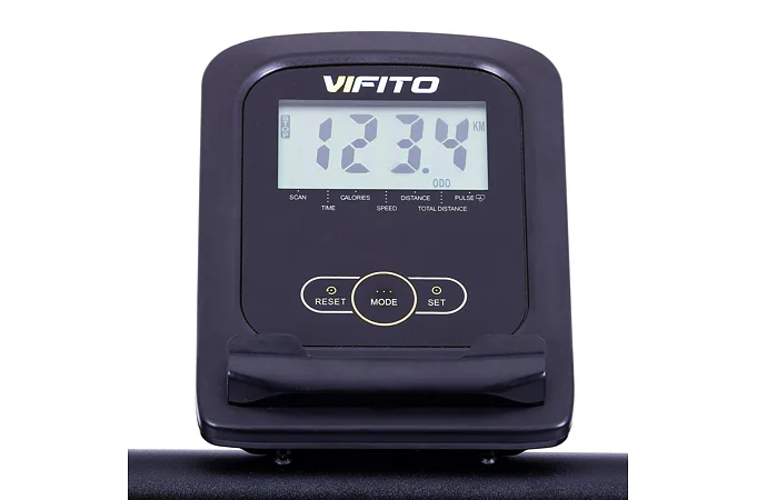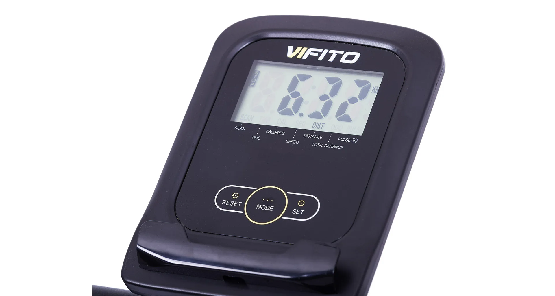 Pás VIFITO Rio 5 je vybavený přehledným počítačem s LCD displejem, který zobrazuje čas běhu, rychlost, splálené kalorie, vzdálenost a celkovou uběhnutou vzdálenost.
