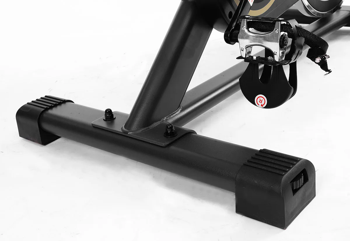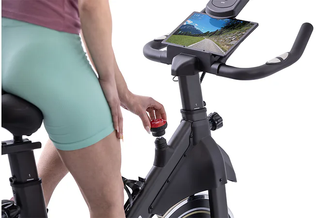 Díky pečlivě vyvinuté konstrukci s vysokou nosností, kvalitnímu zpracování a setrvačníkovému kolu s hmotností 12 kg zaručuje tichý a plynulý chod. Zátěž při šlapaní si snadno upravíte pomocí otočného regulátoru, který také slouží jako bezpečnostní pojistka.