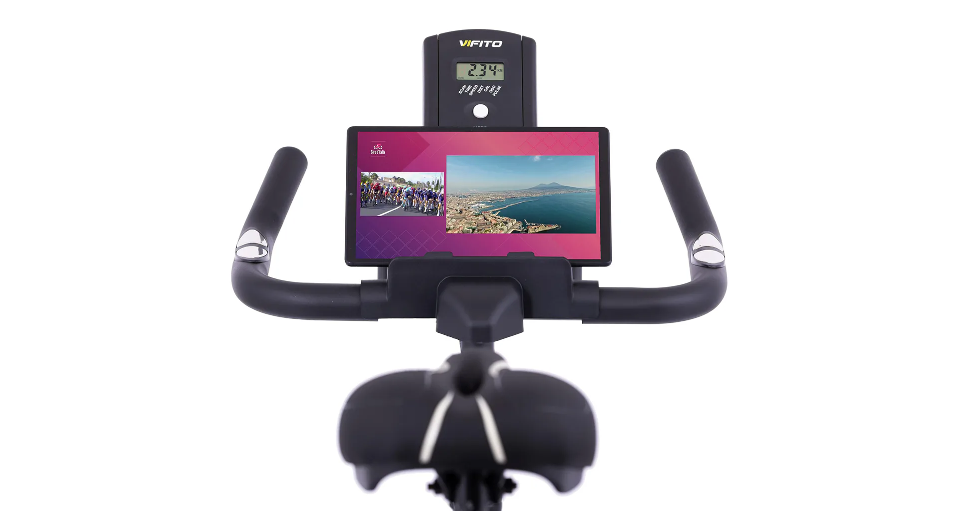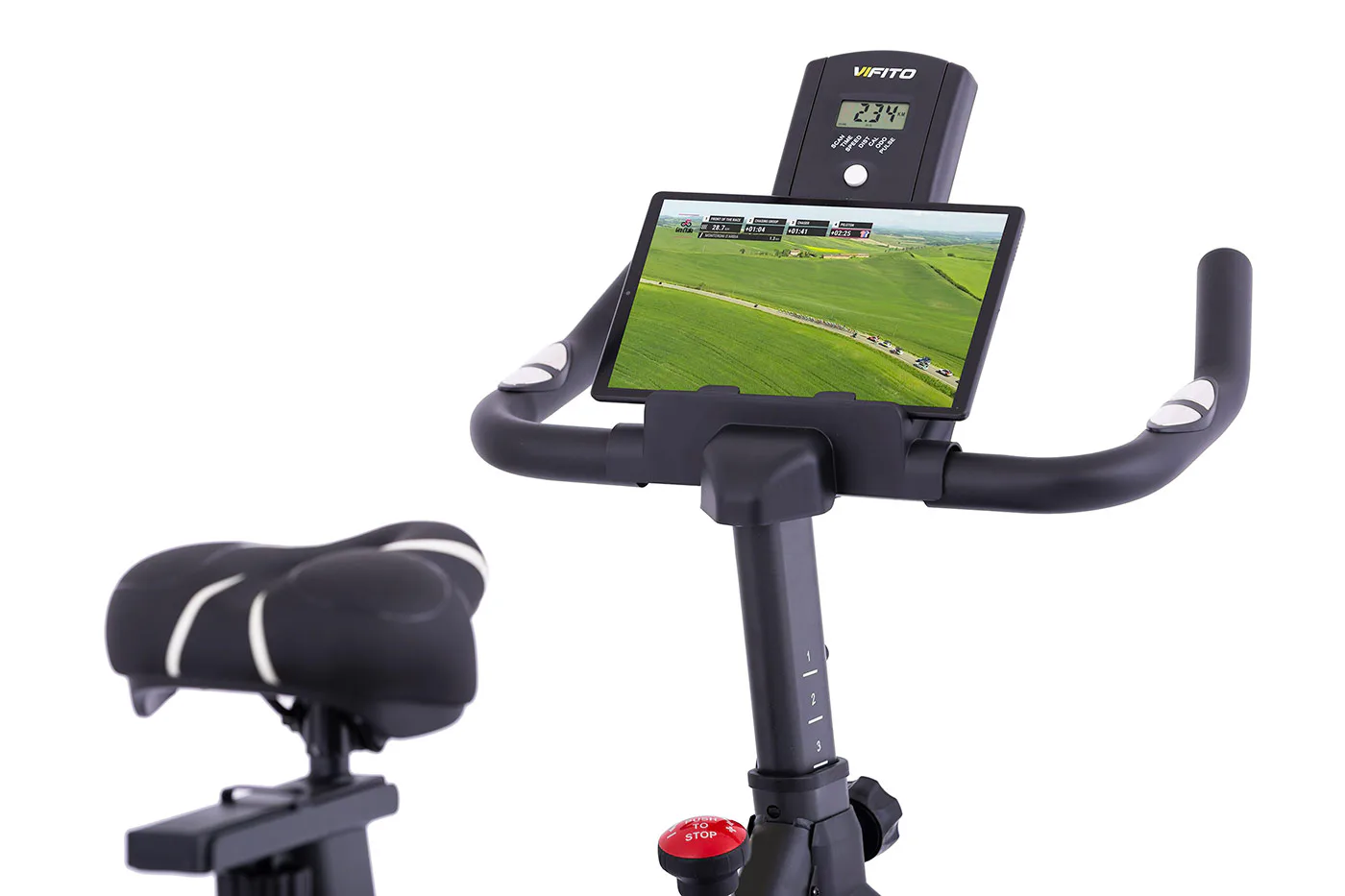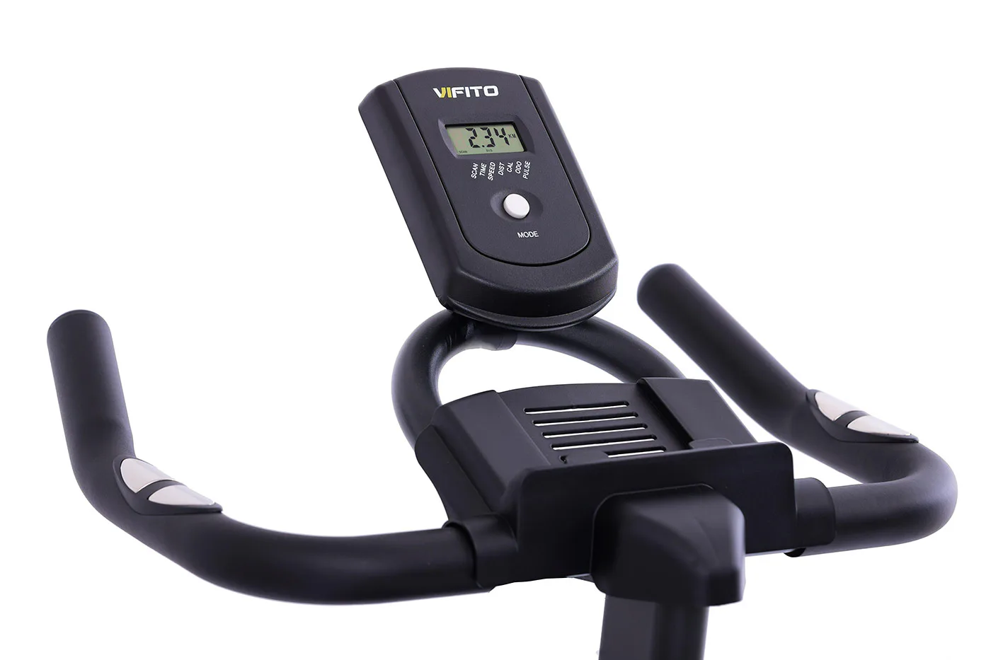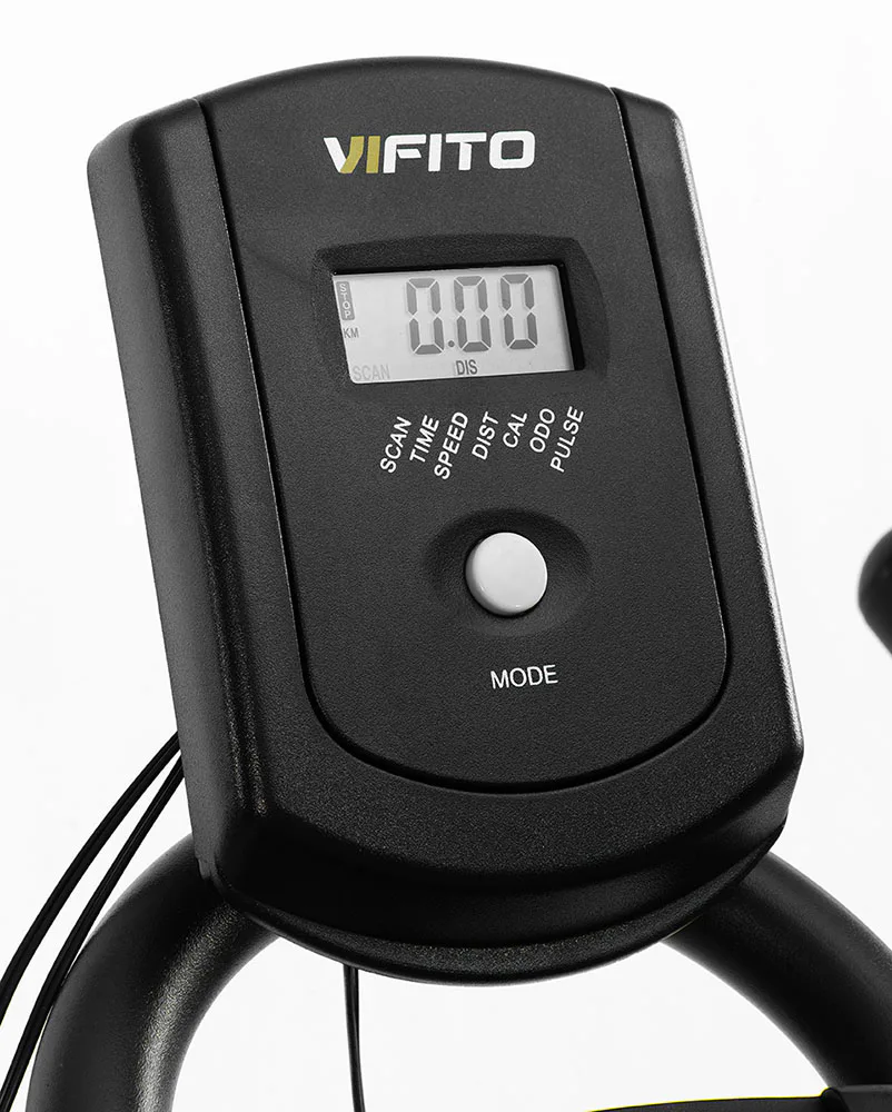 VIFITO Spino 400 je vybaven LCD displejem, který vám vyobrazí všechny základní hodnoty pro váš trénink. Umožní vám sledovat váš trénink v reálném čase pomocí dat monitorujících váš čas, vzdálenost, rychlost, spálené kalorie, otáčky za minutu a srdeční frekvenci. Pro maximální efektivitu tréninku můžete využít měření tepové frekvence přes dlaňové snímače (tzv. hand pulse).