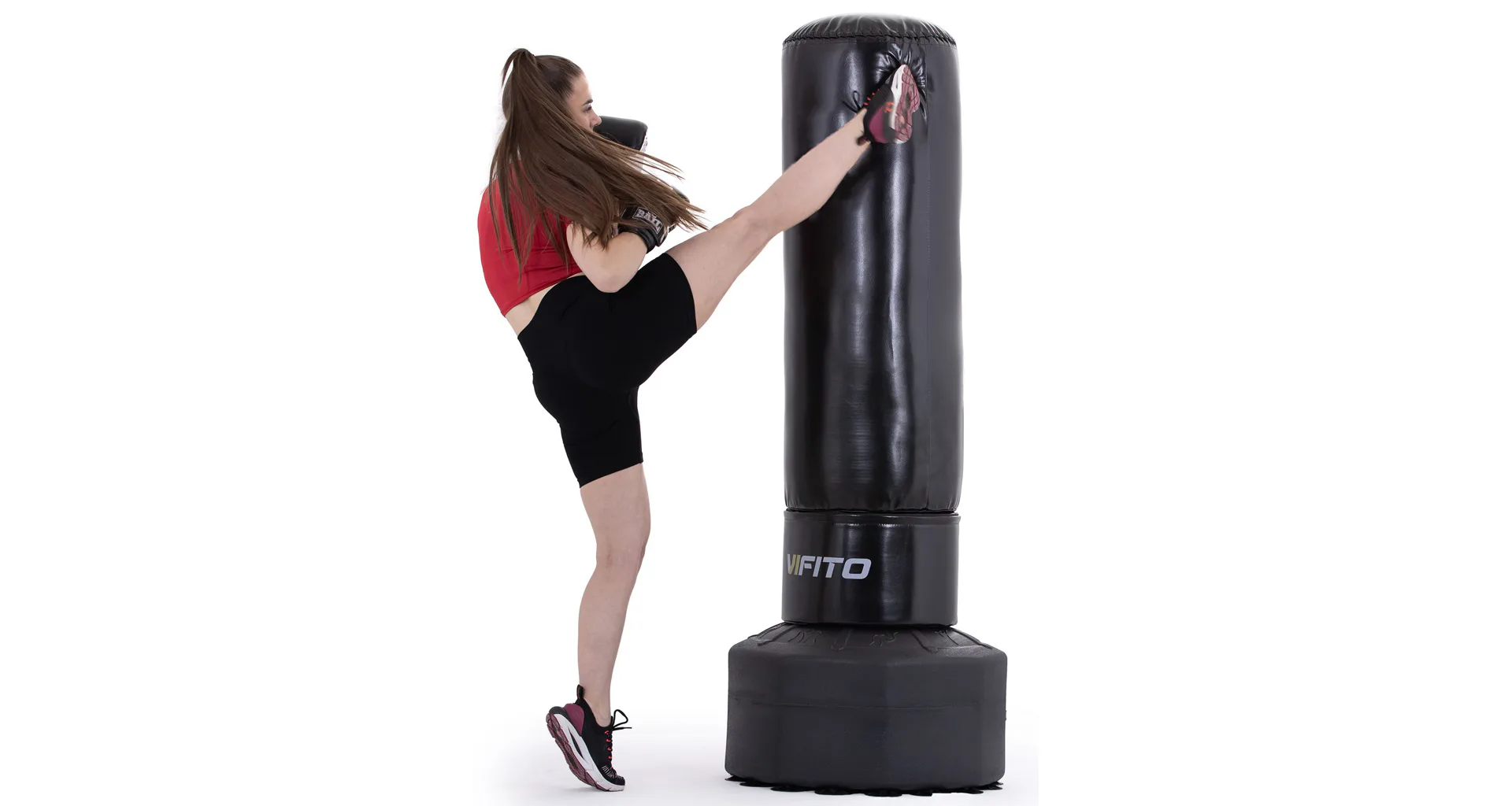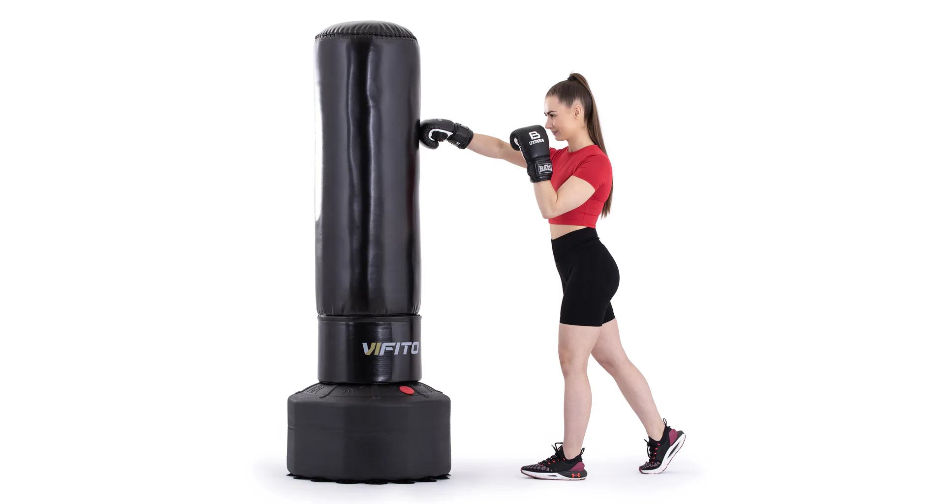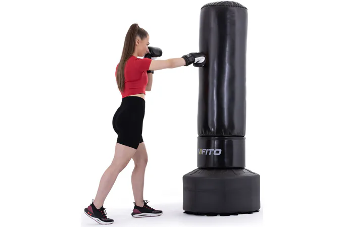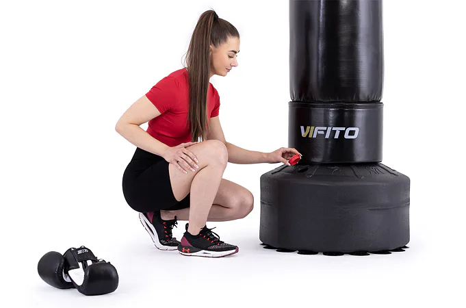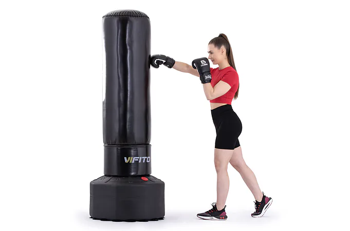VIFITO Stojací boxovací pytel BXT je samostatně stojící boxovací pytel pro efektivní nácvik kopů a úderů. Jde o vhodného parťáka pro začátečníky i pokročilé. Výhodou stojacího boxovacího pytle VIFITO je, že nemusíte do zdi vrtat očko, abyste si pytel pověsili. Můžete jej tedy používat opravdu kdykoliv a kdekoliv.