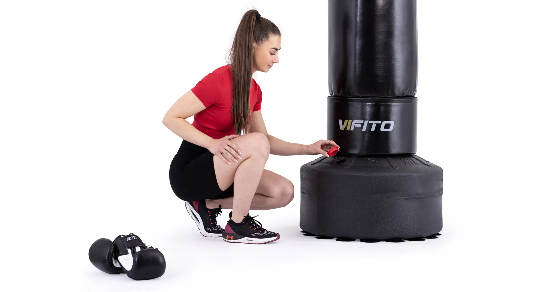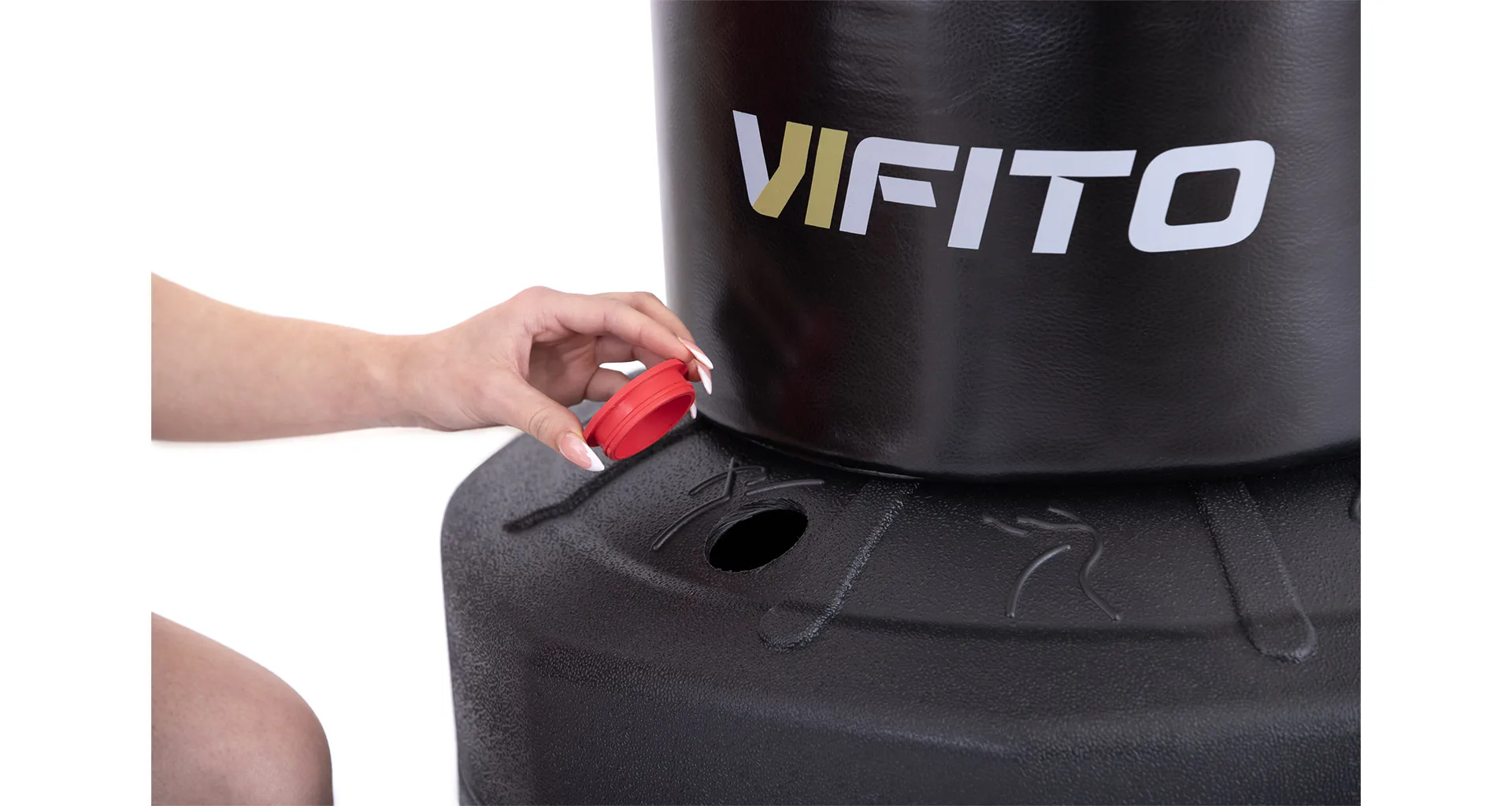 Stabilitu pytle zajišťuje velká základna, díky které po naplnění pískem, nebo vodou dosáhnete vysoké hmotnosti, přísavky zespodu základny navíc zajistí, že pytel zůstane na jednom místě. Se stojacím pytlem VIFITO, se tedy nemusí bát trénovat začátečník, ale ani pokročilý fighter.