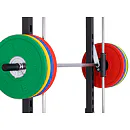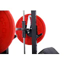 Vyobrazené kotouče lavice a osa na volnou činku nejsou součástí dodávky, lze je dokoupit.