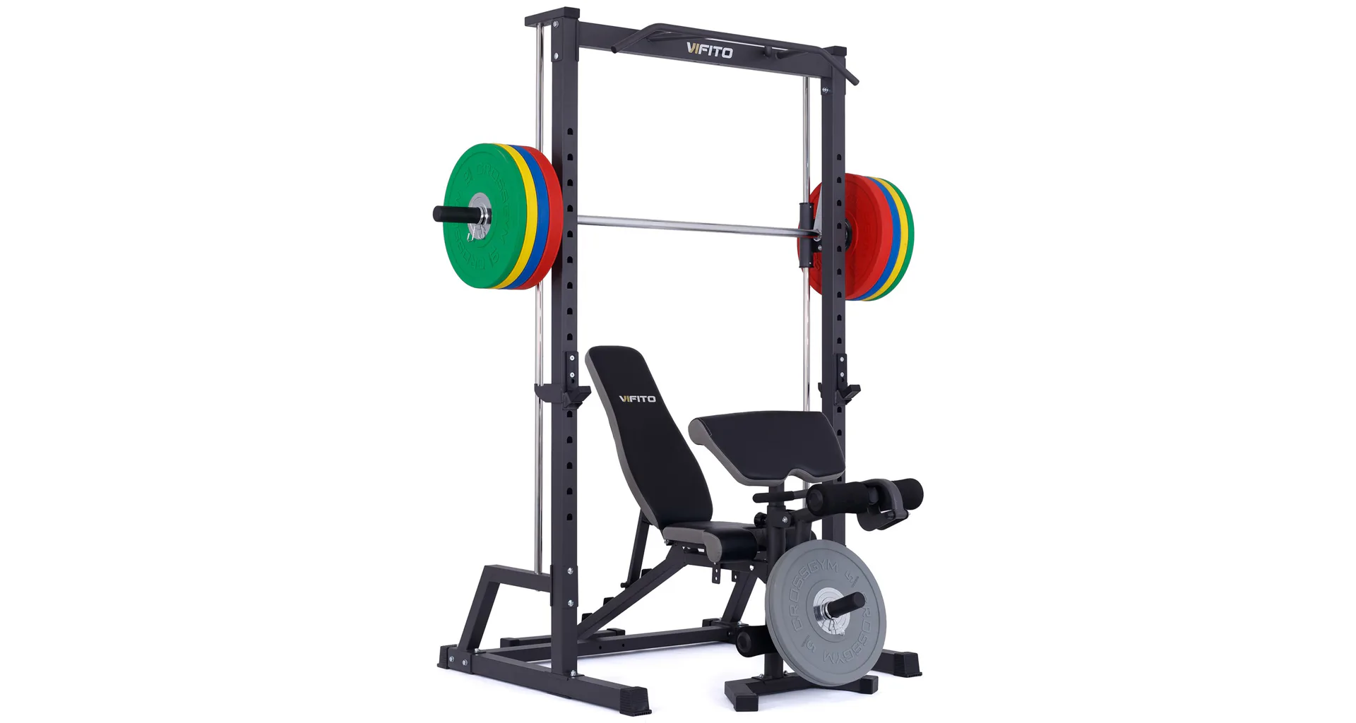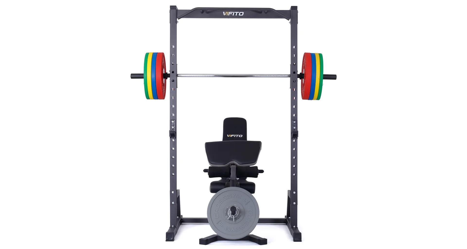 VIFITO Multipress s hrazdou S25 má robustní konstrukci, kde máte možnost určit si výšku vedené osy pro daný cvik v 16 polohách podle vašich potřeb. K dispozici je chromovaná osa s nakládacími trny o průměru 25 mm nebo 50 mm (olympijské), díky standardně dodávanému adaptéru. Váhu si tedy můžete určit podle vlastních potřeb a cvičit mohou začátečníci i zkušení jedinci.