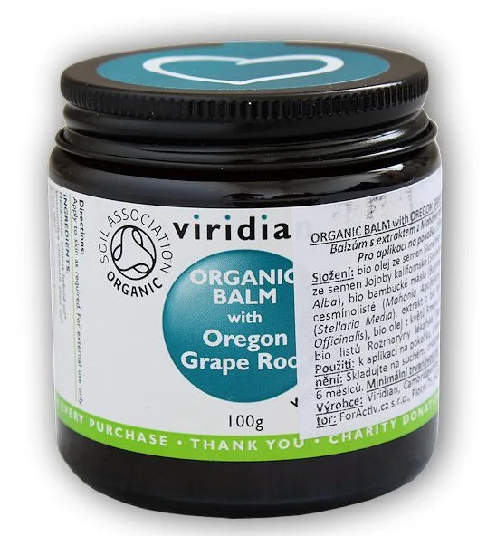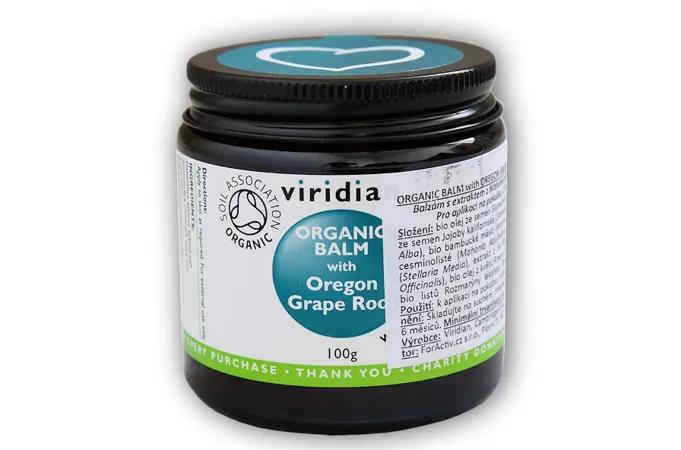 Viridian Balm with Oregon Grape Root je BIO balzam na pleť zložený výhradne z prírodných účinných zložiek zameraných na podporu pleti pri problémoch. Užíva sa pri atopickom ekzéme, vyrážkach spôsobených toxínmi alebo baktériami, alebo pri lupienke. Na rozdiel od bežných krémov a balzamov neobsahuje žiadne syntetické zložky a poskytuje tak 100% prírodnú účinnú podporu.