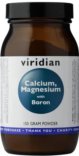 VIRIDIAN Calcium Magnesium with Boron je zmes vápnika, horčíka a bóru, obohatená o vitamín C a kyselinu jablčnú. Účinky všetkých týchto zložiek sú veľmi dobre známe, zmes je špeciálne namiešaná pre čo najlepšie synergické pôsobenie. Produkt neobsahuje žiadne syntetické aditíva a umelé farbivá, produkt neobsahuje geneticky modifikované, či ožarované zložky.