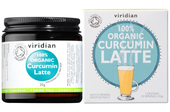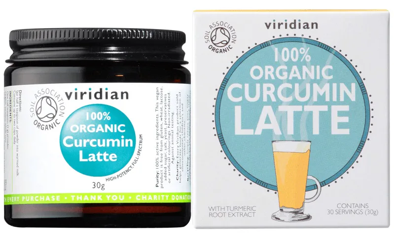 100% BIO Viridian Curcumin Latte obsahuje okrem starostlivo namiešaných koreniacich prísad (zázvor, vanilka, kardamóm a chilli) špeciálny extrakt z kurkumy, ktorý má mnohonásobne vyšší obsah účinnej látky kurkumínu. Latté možno piť na raňajky alebo kedykoľvek počas dňa na desiatu.