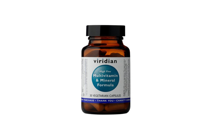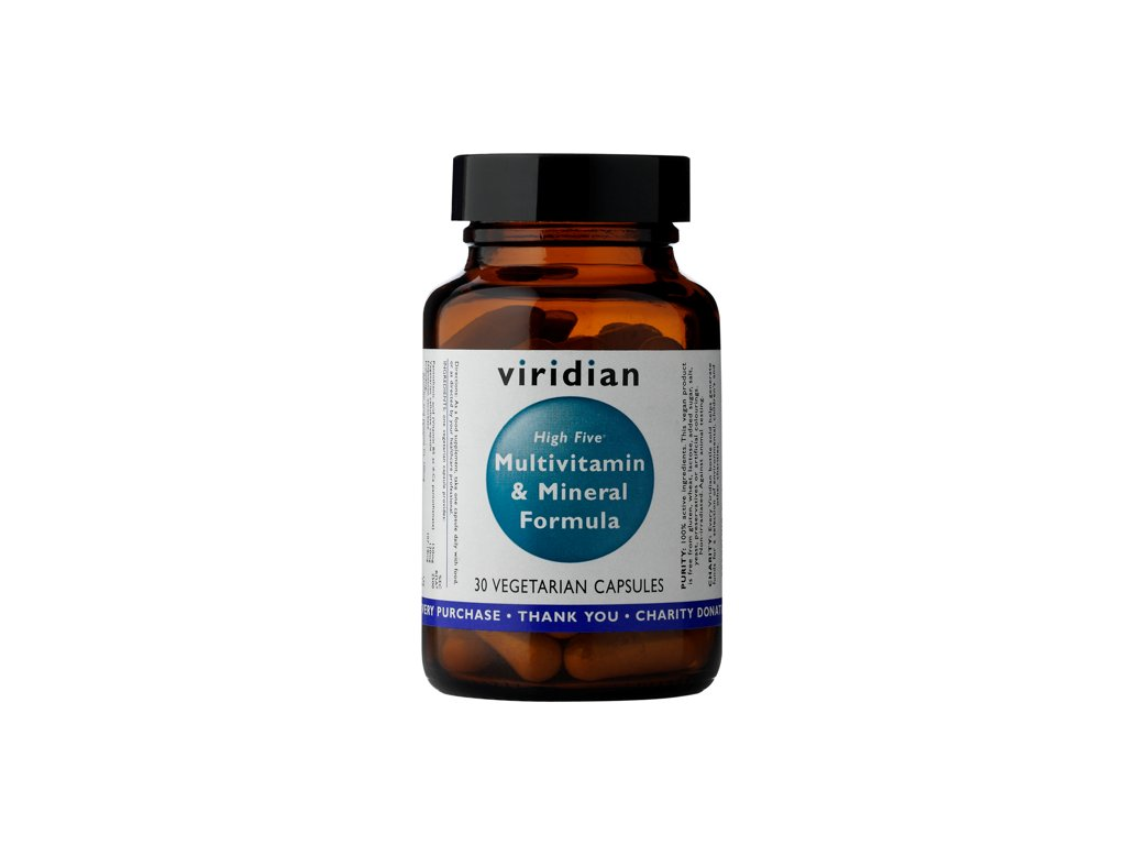 VIRIDIAN High Five Multivitamin a Mineral Formul je kvalitná zmes vitamínov, minerálov a rastlinných extraktov, s vysokým obsahom vitamínu B1, B2, B3, B5, B12 a D3. High 5 Multivitamín obsahuje kompletné spektrum všetkých dôležitých vitamínov, a to v tých najúčinnejších formách a pomeroch, zmes je doplnená o silné antioxidanty ako je Beta Karotén, Kryptoxantín, Alpha Karotén, Zeaxantín a Luteín. Vybrané minerály sú v exkluzívnych formách chelátu. High 5 Multivitamín je zostavený pre bežné užívanie, najmä pre veľmi aktívnych, preťažených jedincov ako sú napr. podnikatelia, ženy v menštruačnej perióde, starší ľudia, vegetariáni, vegáni, a ďalšie.