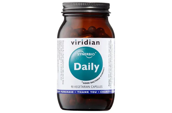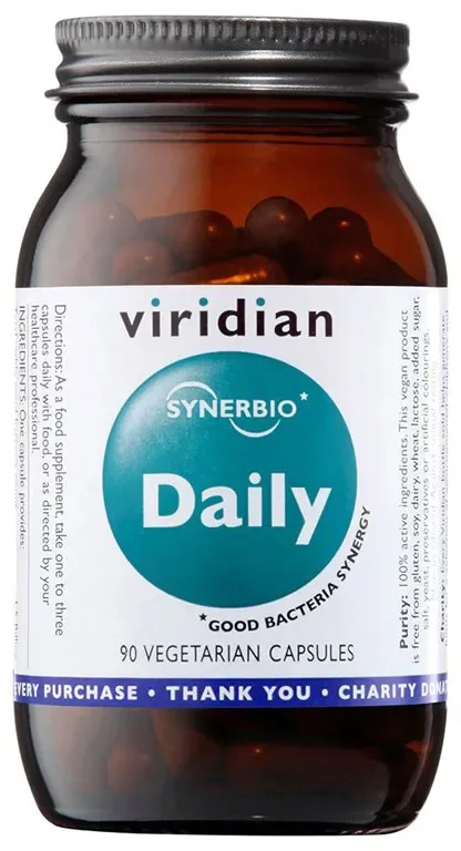 Viridian Synerbio Daily je účinná zmes, ktorá kombinuje probiotiká vo forme piatich bakteriálnych kultúr a prebiotiká vo forme fruktooligosacharidov a Inulínu. Prebiotikum FS2‑60 pochádza z rastlinných zdrojov, je využité črevnou mikroflórou na zvýšenie hladiny žiaducich mikroorganizmov a naopak na potlačenie tých nevhodných.