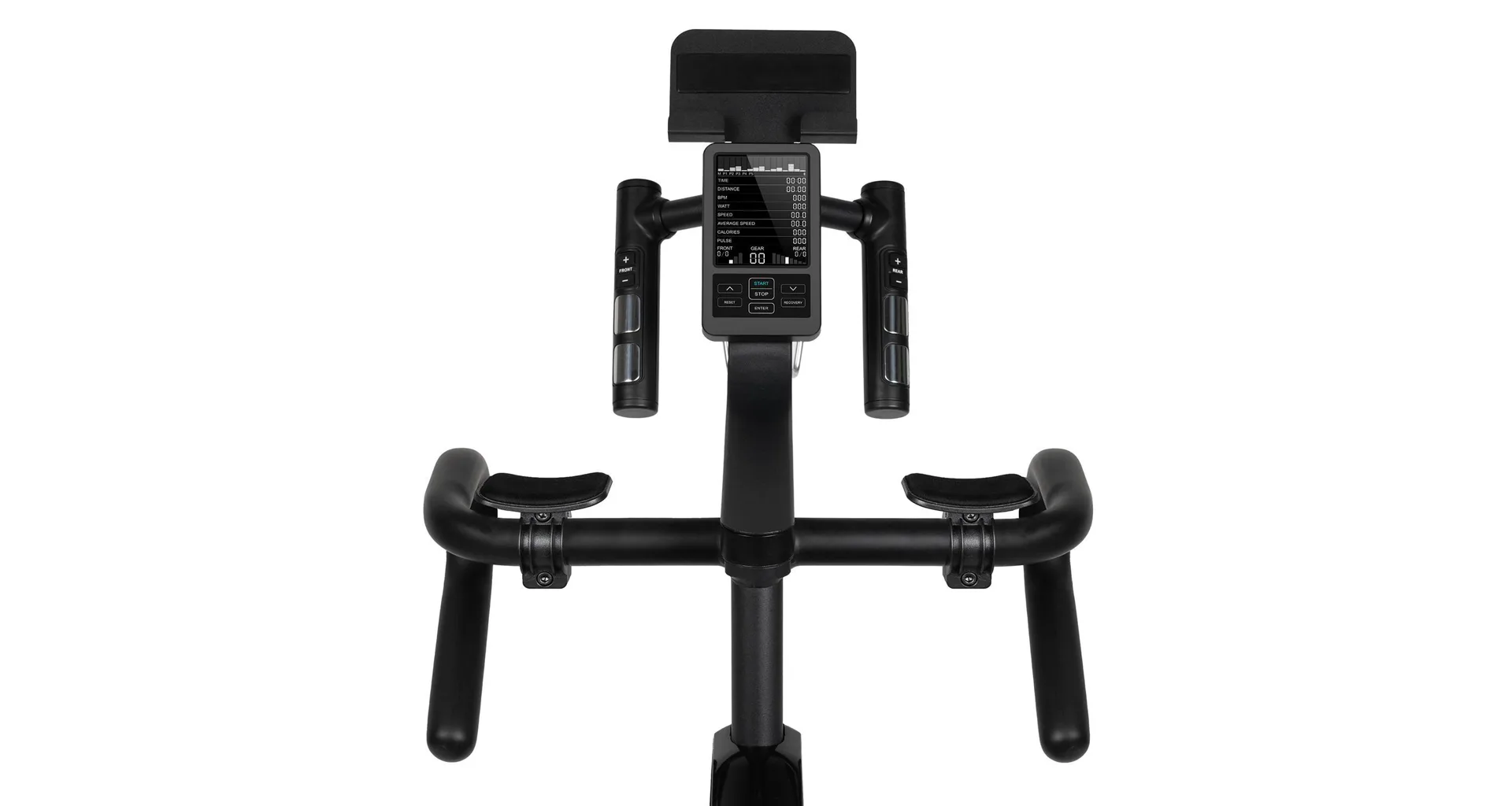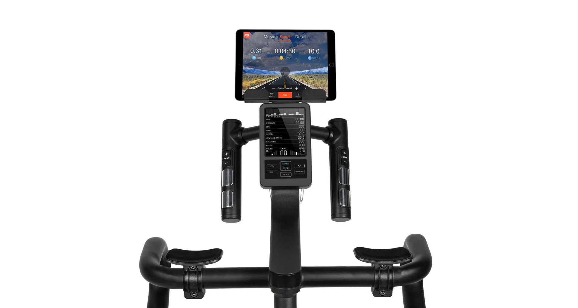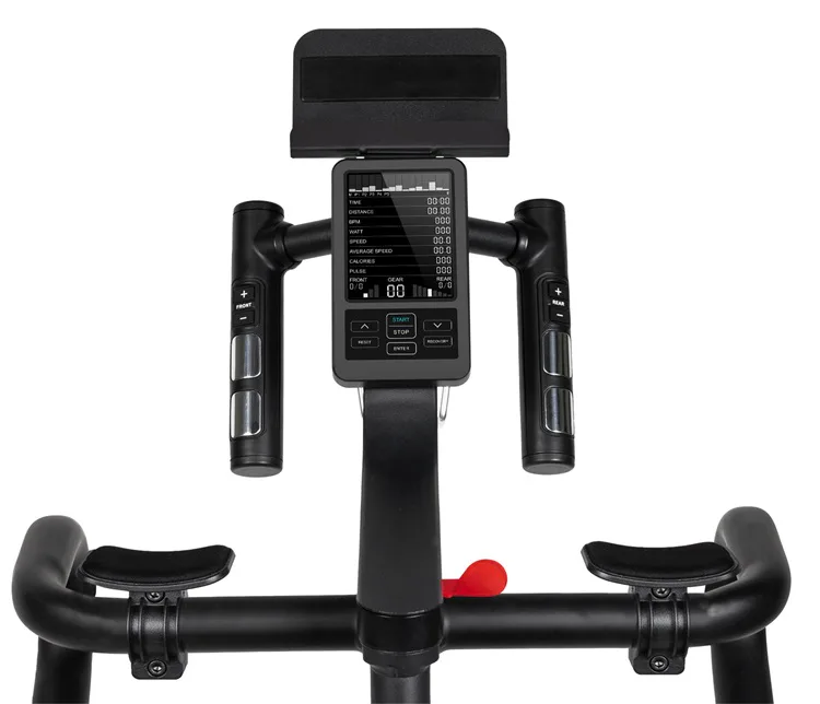 Zátěž při šlapání si můžete během tréninku regulovat pomocí tlačítek na PC konzoli, trenažér umožňuje nastavit 24 převodů, nebo využít jeden z 6 přednastavených programů. Pokud by Vám přednastavené programy nestačily, můžete si vytvořit až 4 vlastní uživatelské programy. Trenažer nemá volnoběh, díky kterému budete mít pocit jako na opravdovém kole. Součástí výbavy je i brzdová červená páčka pro zastavení.