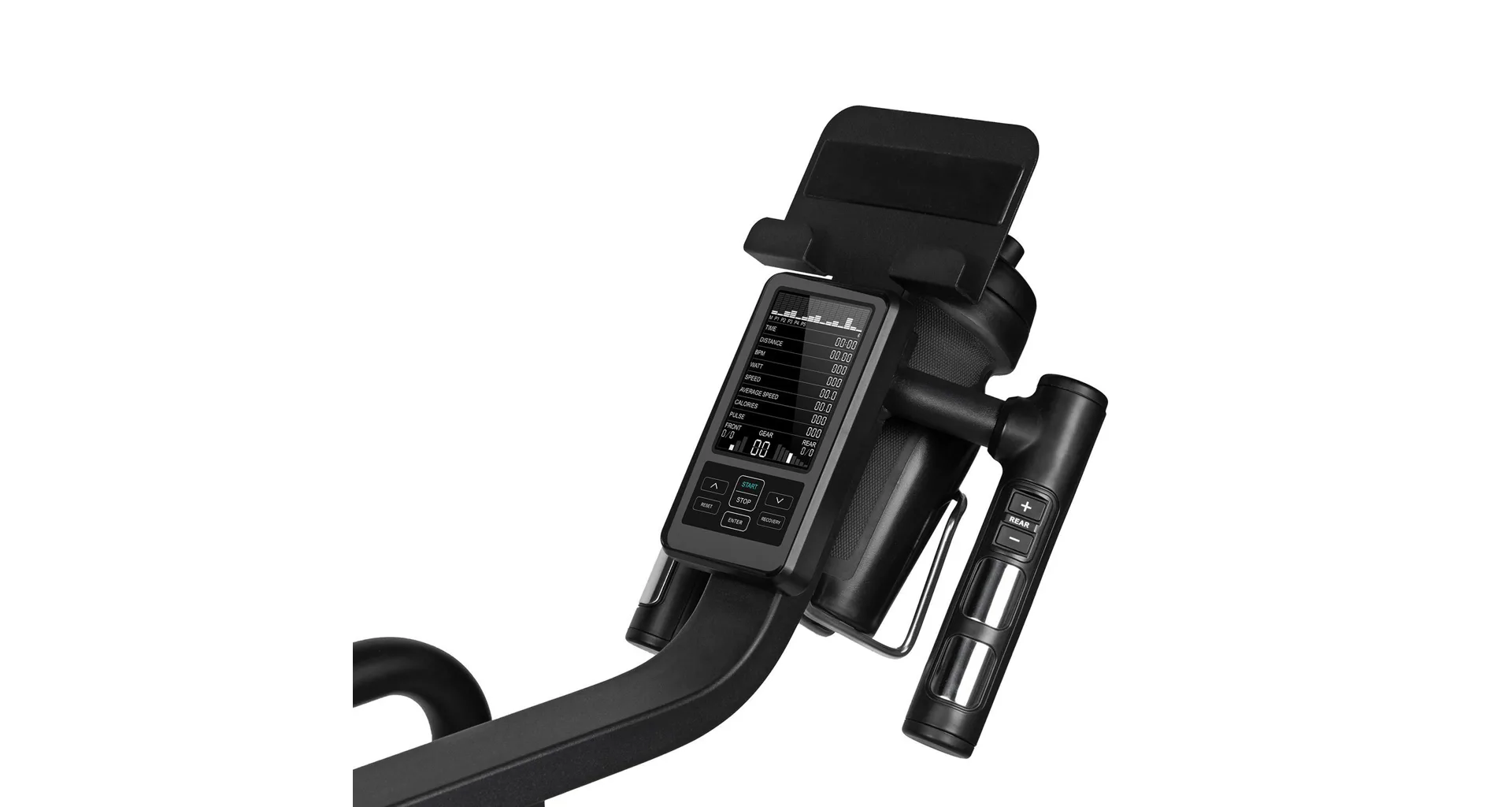 VirtuFit Etappe 2.0i nabízí moderní přehledný LCD displej, který vám zobrazí všechny důležité hodnoty pro váš trénink. Umožní vám sledovat váš trénink v reálném čase pomocí dat monitorujících váš čas, vzdálenost, rychlost, průměrnou rychlost, watty, spálené kalorie, otáčky za minutu a srdeční frekvenci.
