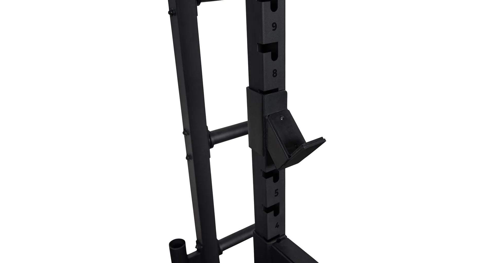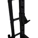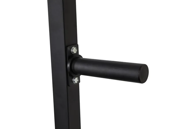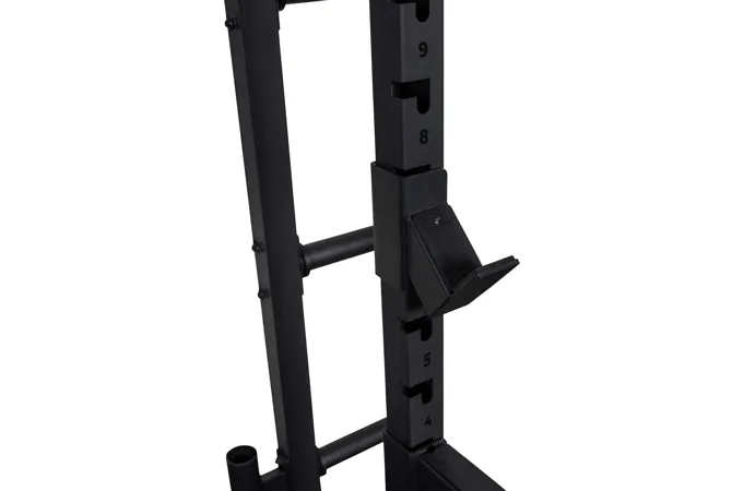 Tento stojan umožnuje pohodlné cvičení pro uživatele s velikostí až 215 cm díky standardní rozteči a 15 úrovním nastavení výšky háků na činku. Umožňuje tak snadné nastavení pro různé cviky a komfortní úchop i bezpečné odložení činky, což ocení zejména vyšší osoby. Pro vyšší bezpečnost je navíc vybaven pogumovanými bezpečnostními dorazy, které unesou až 350 kg a mohou sloužit jako záložní odkládací plocha pro činku, například při cvičení bicepsu.
