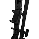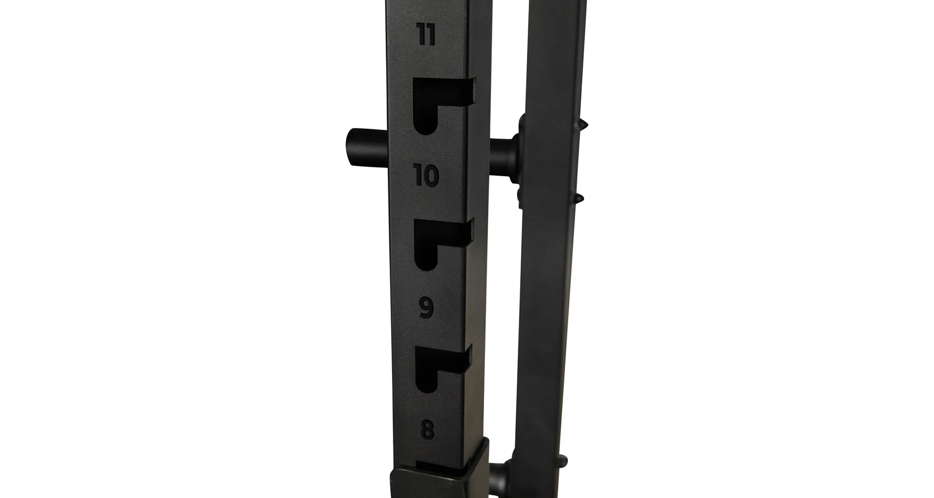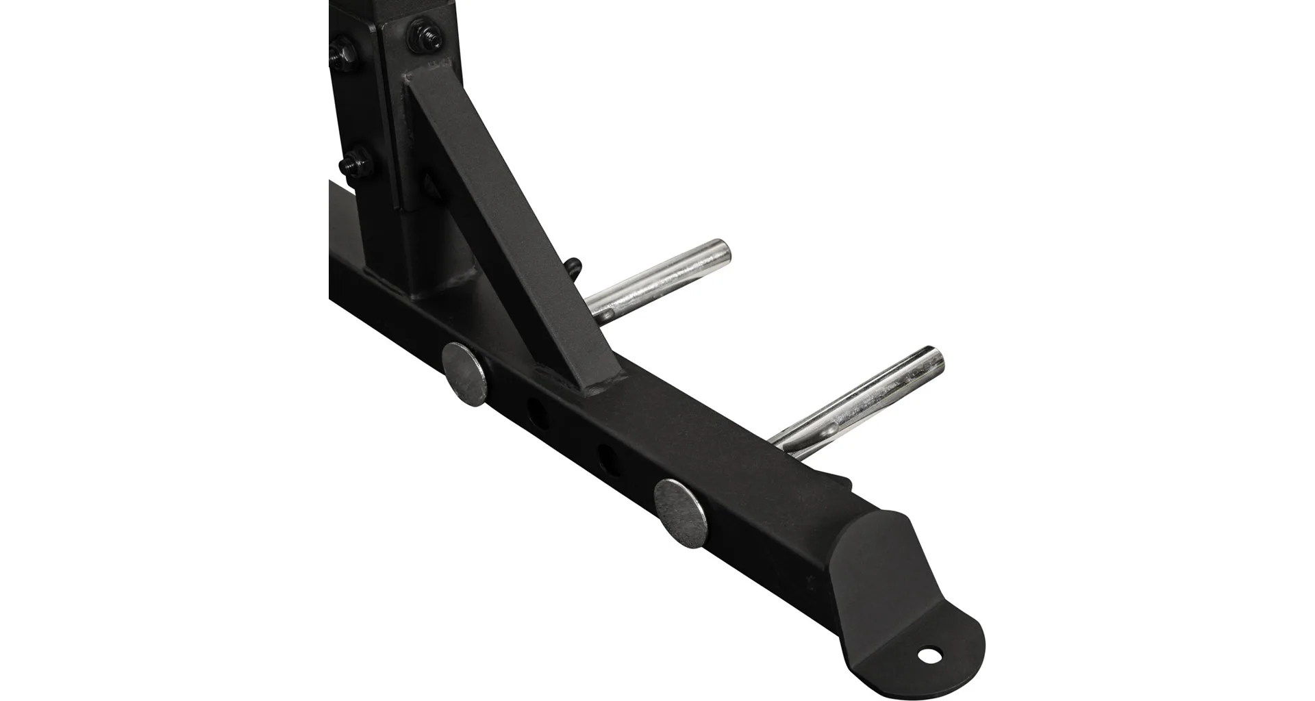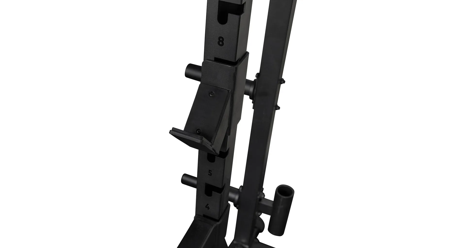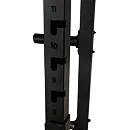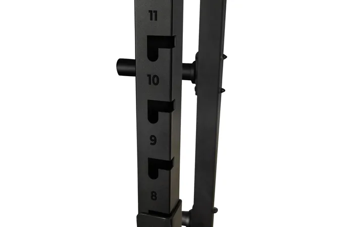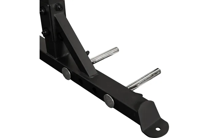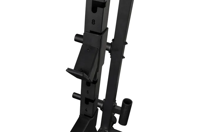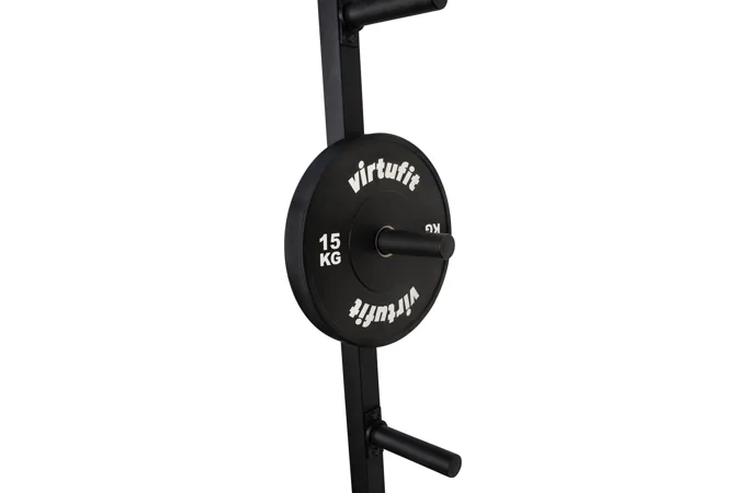 Na bocích stojanu je celkem osm odkládacích trnů na kotouče, každý s průměrem 50 mm a nosností 50 kg, což umožňuje bezpečné uložení až 400 kg kotoučů. Kotouče je tak možné snadno nakládat na činku i bezpečně odložit po cvičení, čímž se zvyšuje celková organizace a bezpečnost v prostoru kolem stojanu.