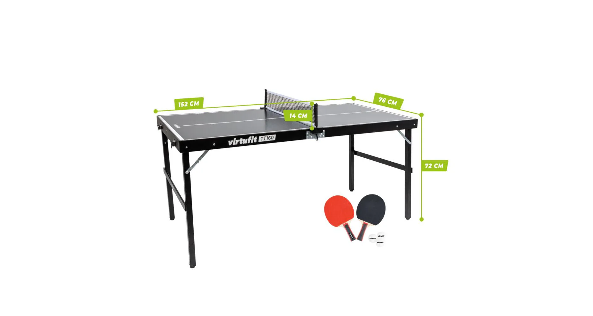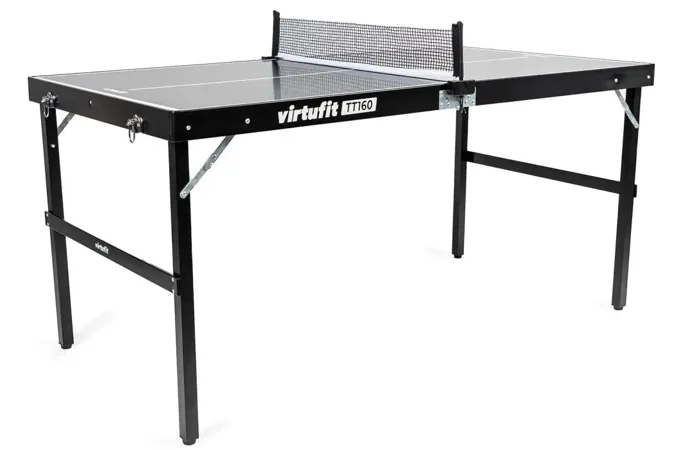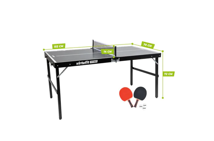 VirtuFit Mini Table je kompaktný a originálny mini stôl, ktorý ocenia dospelý aj deti. Vďaka kompaktným rozmerom sa stôl ľahko prepravuje, takže môžete mať stôl stále po ruke. Stôl je primárne určený do domáceho indoor prostredia, ale dá sa využiť aj za pekného počasia vo vonkajších podmienkach. Navyše má stôl nastaviteľné nôžky, takže aj na hrboľatom trávniku môžete hrať ako na rovnom teréne.