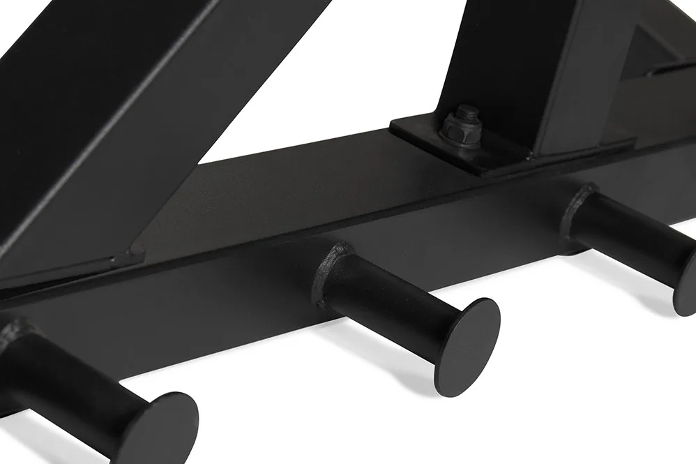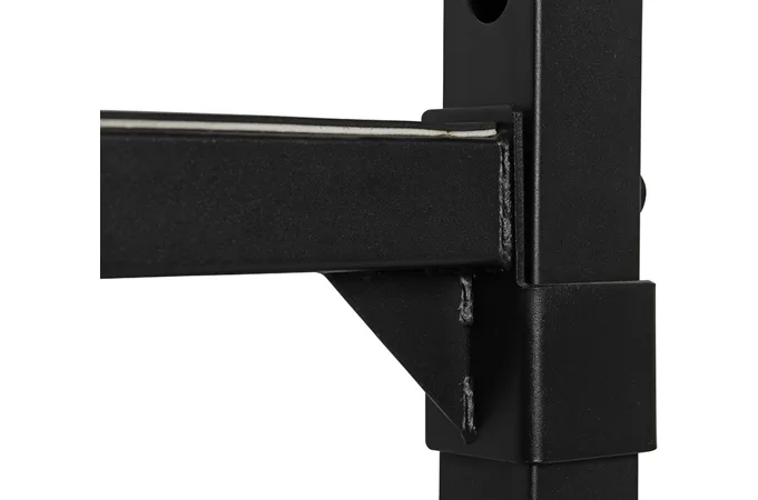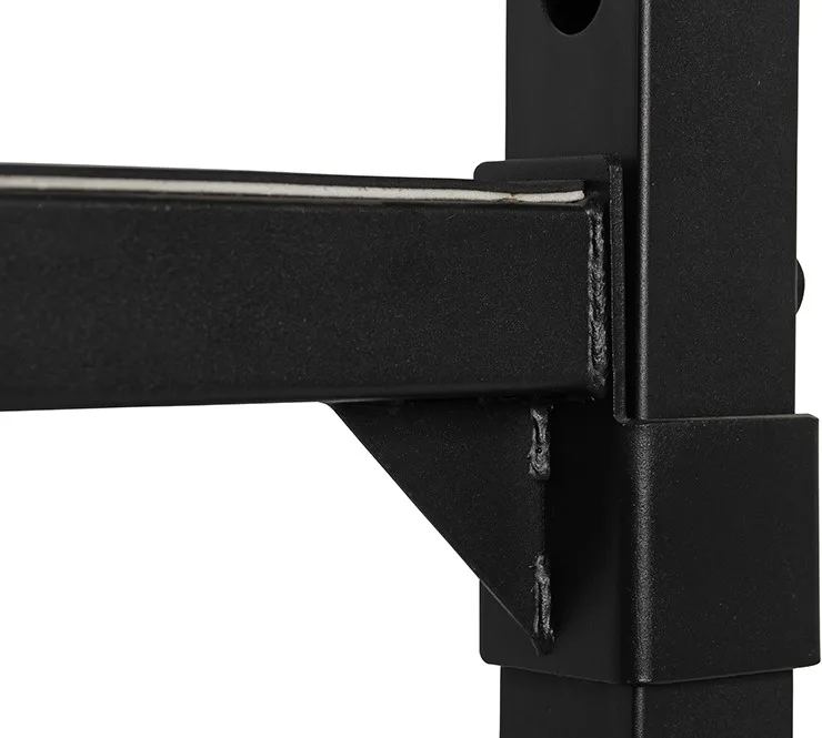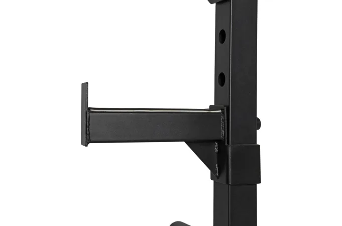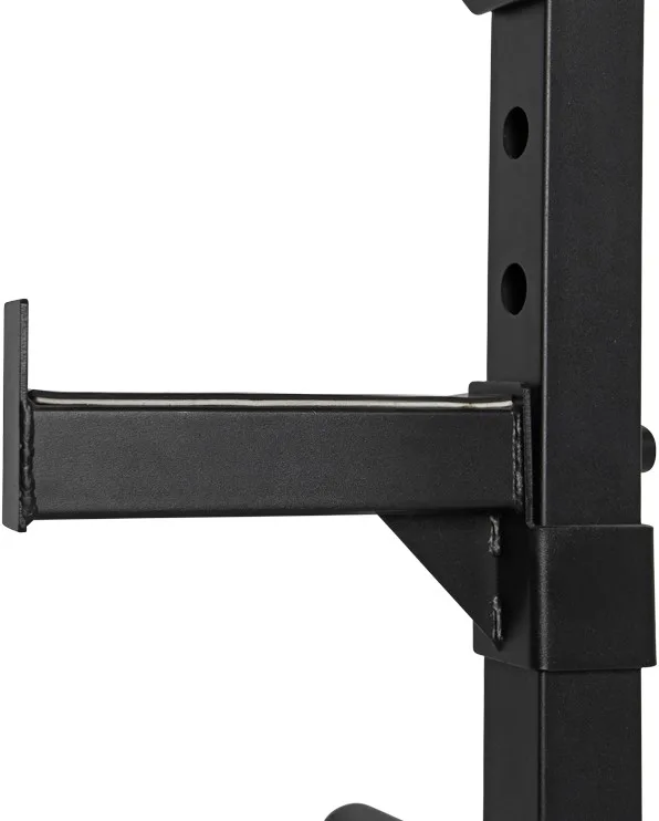 Stojan je osadený 4 držiakmi na činku, z toho 2 nastaviteľné vrchné držiaky pre drep, tlaky na ramená a pod. a 2 spodné držiaky, ktoré slúžia ako odkladacia aj bezpečnostná plocha. Vďaka širokej hrazde, ktorá sa nachádza na vrchole stojana, môžete skvele precvičiť chrbtové svaly a bicepsy.