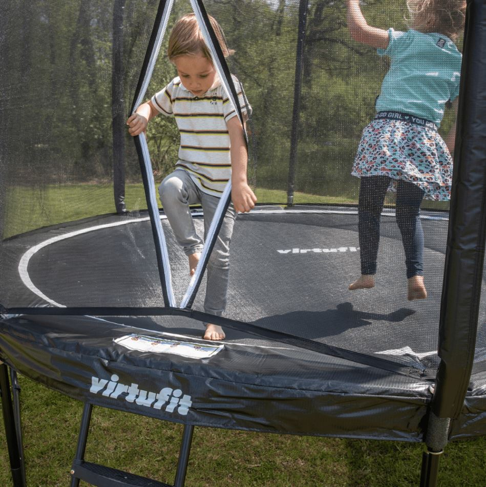 Trampolína VIRTUFIT Premium je perfektným parťákom v letných mesiacoch. Vaše deti si skákanie na tejto tramapolíne rýchlo zamilujú a vďaka vysokej nosnosti až 120 kg, sa môžu spoločne s deťmi zabaviť aj dospelí. Trampolíny VIRTUFIT Premium vynikajú vysokou stabilitou, pevnosťou a bezpečnosťou. Dokonalú stabilitu zaisťujú 3 robustné nohy. Zvýšená stabilita trampolín VIRTUFIT Premium je dosiahnutá pomocou robustnosti a prevedenia nôh. Bezpečnosť zaisťujú zosilnené ochranné kryty pružín a nová technológia T-spojov.