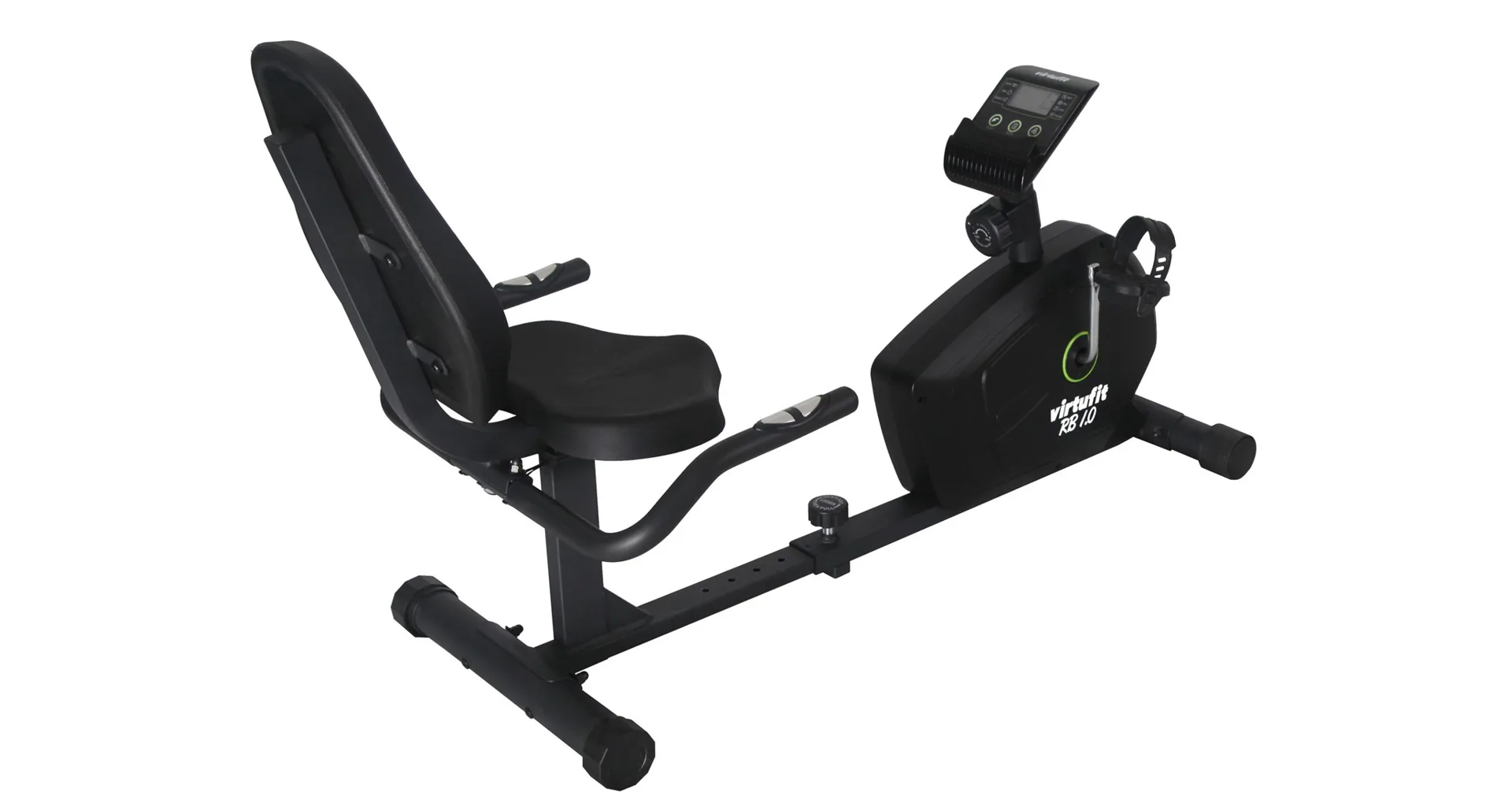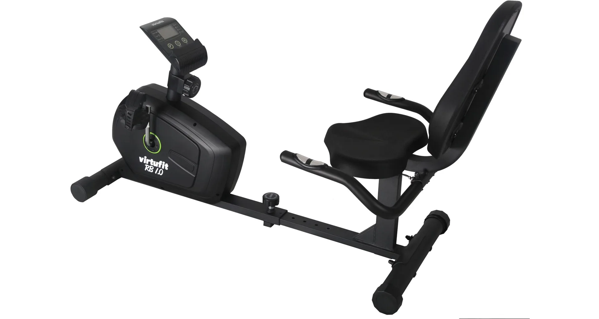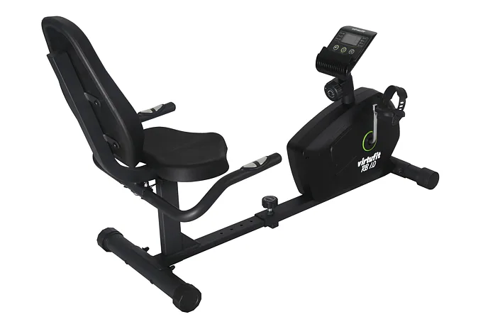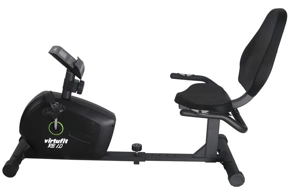 Recumbent VirtuFit RB 1.0 je vybaven LCD displejem s držákem na tablet/smartphone, senzory pro měření tepové frekvence, vyrovnávači nerovnosti, transportními kolečky..