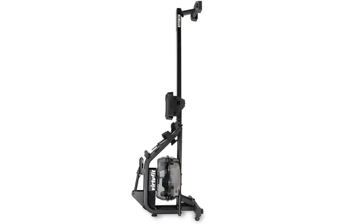 Veslovací trenažér VIRTUFIT Water Resistance Aqua 100i disponuje přehledným počítačem, transportními kolečky, vyrovnávači nerovnosti a možností složení (postavení do kolmé polohy).