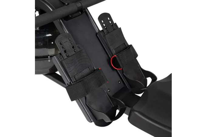Pohodlnou polohu a pocit při veslování zajišťuje ergonomicky tvarované sedlo a protiskluzové nášlapy s nastavitelnými řemínky pro správné zafixování nohou.