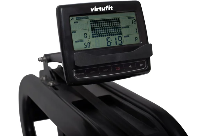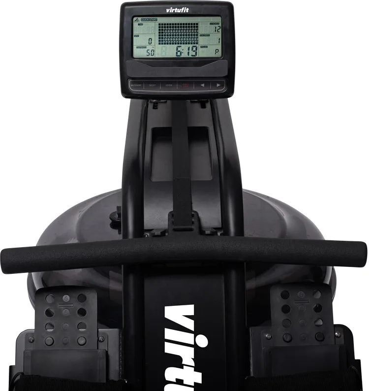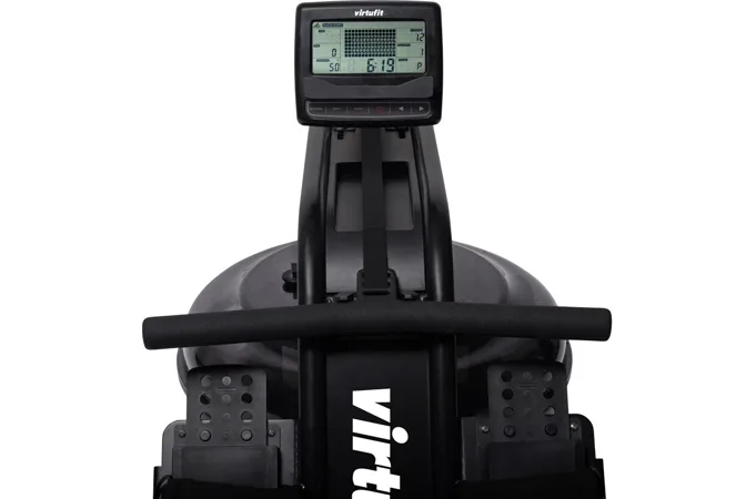 Veslovací trenažér VIRTUFIT Water Resistance Row 1000 disponuje přehledným počítačem, transportními kolečky, vyrovnávači nerovnosti a možností složení.