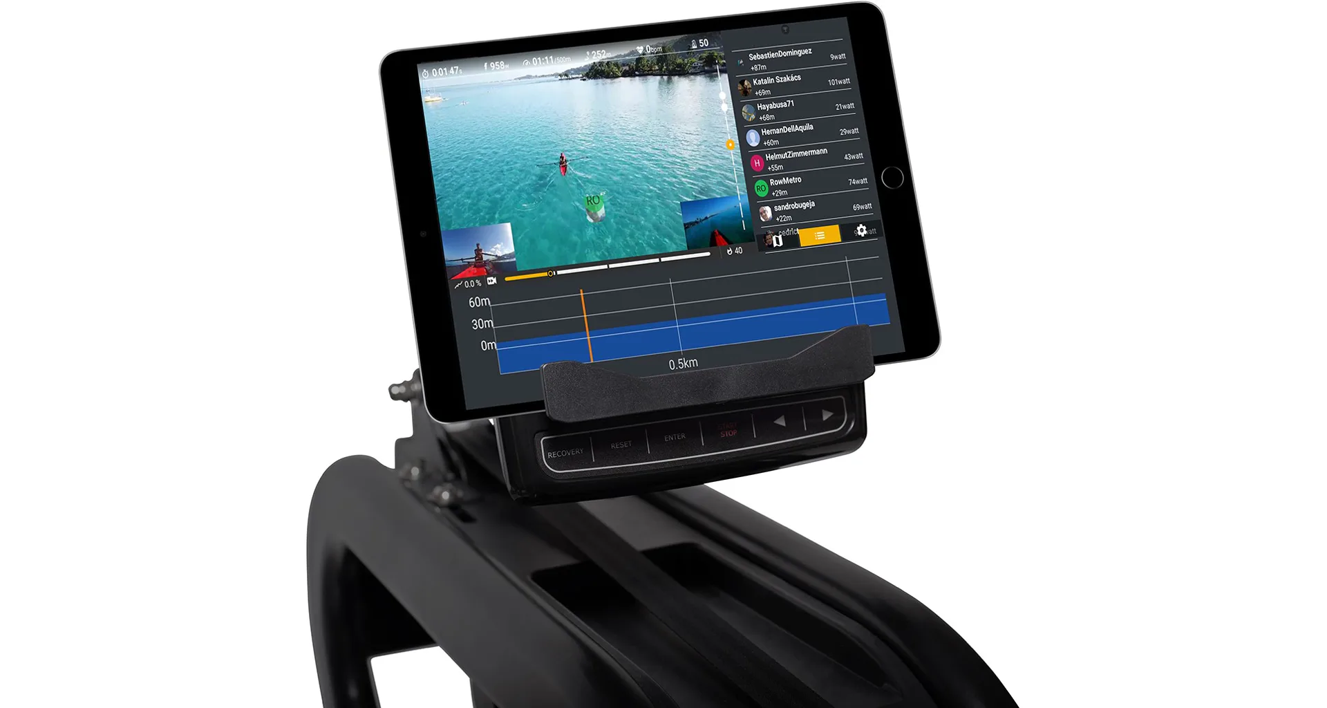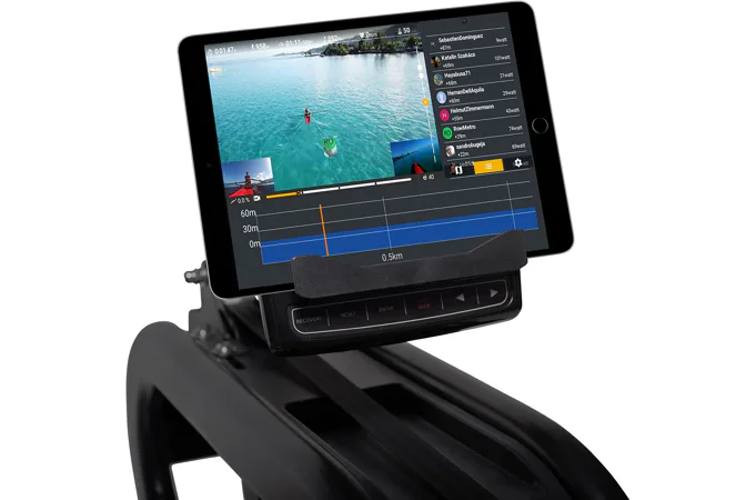 Pohodlnou polohu a pocit při veslování zajišťuje ergonomicky tvarované sedlo a protiskluzové profesionální nášlapy s nastavitelnými řemínky pro správné zafixování nohou.