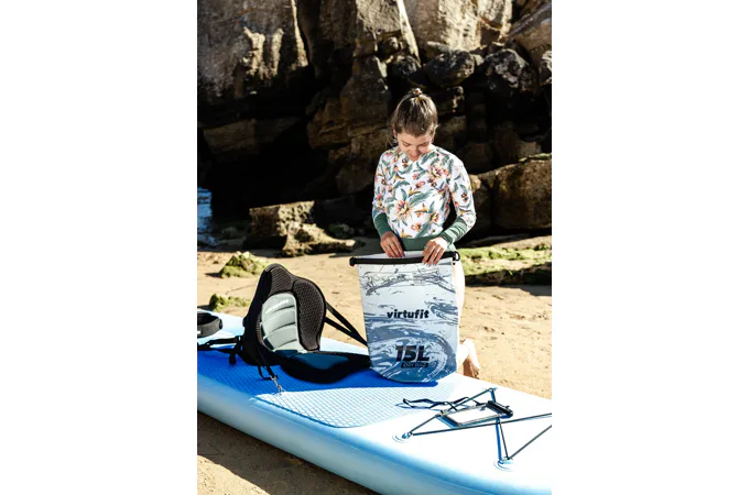 Vďaka praktickému popruhu na rameno si môžete vak ľahko prehodiť cez chrbát a pohodlne ho nosiť na výlety, vodné športy alebo do posilňovne. S objemom 5, 10, 15 alebo 20 litrov poskytuje batoh dostatok priestoru pre uteráky, oblečenie alebo elektroniku, ktorú chcete ochrániť pred vlhkosťou.