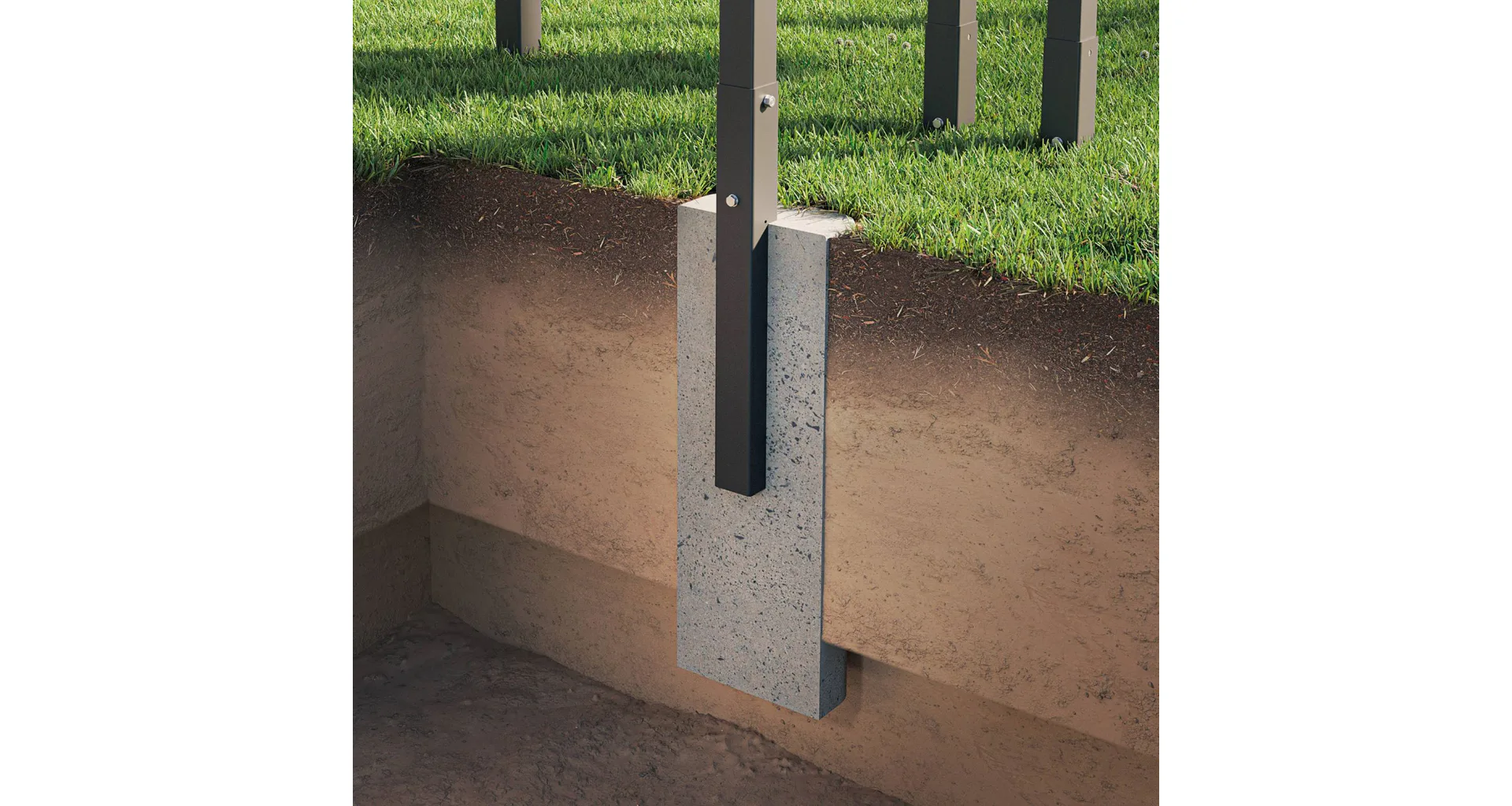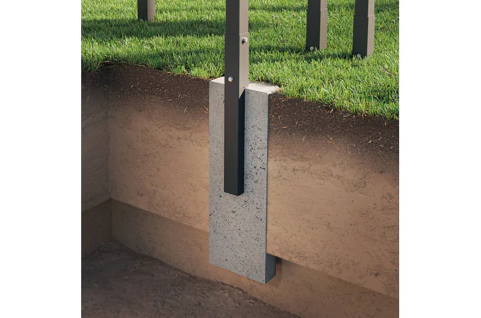 Na dosiahnutie najlepších výsledkov odporúčame stĺpiky konštrukcie zapustiť do zeme v hĺbke aspoň 37 cm a následne ich zabetónovať - minimálne rozmery základu sú 25x25x60 cm.