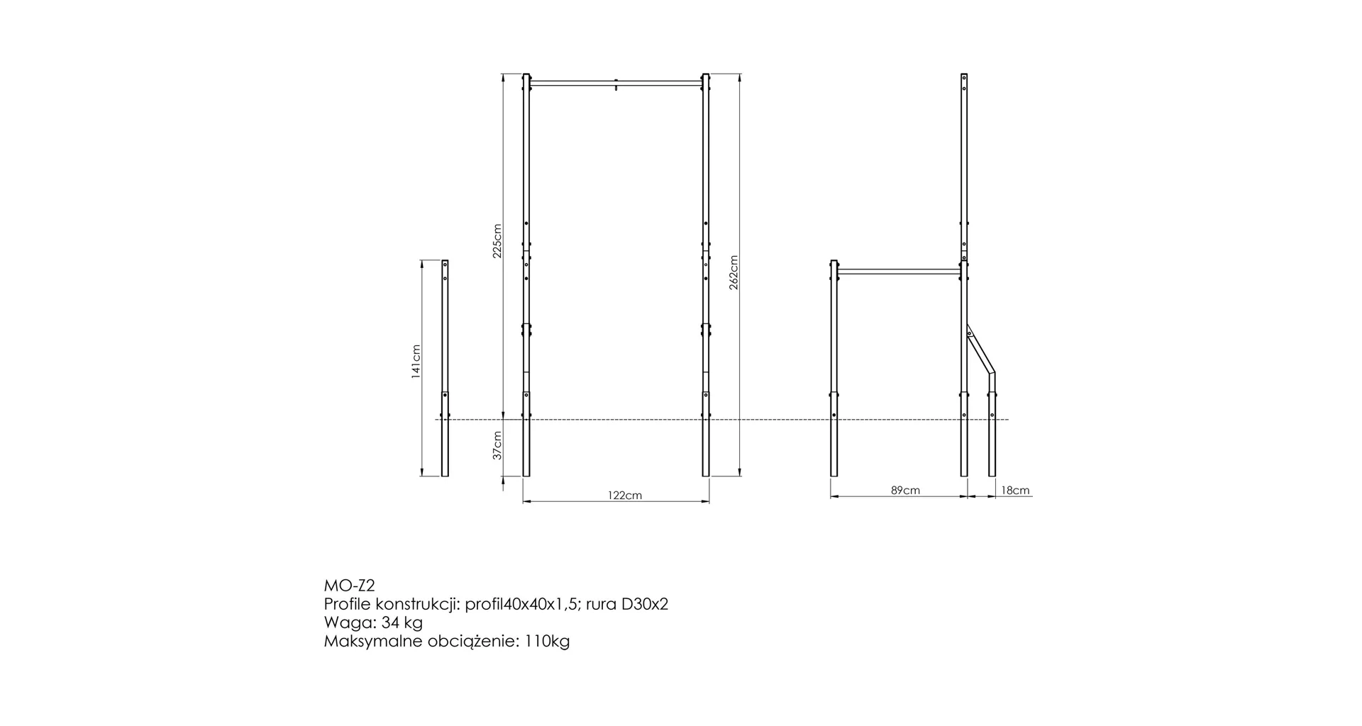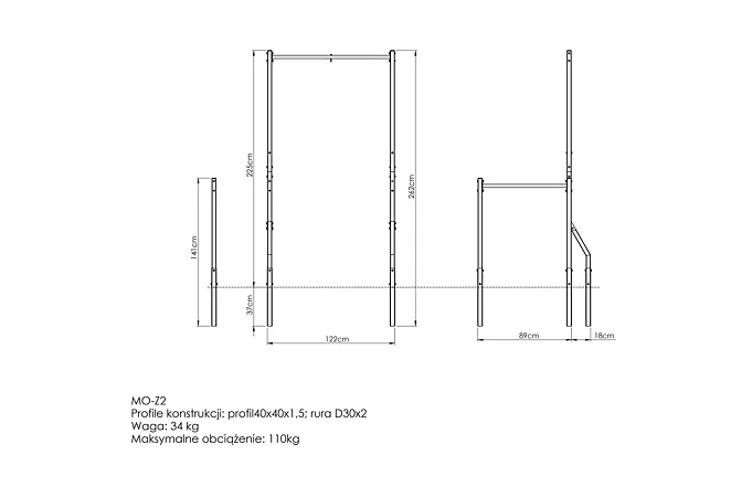 Hrazda je umiestnená vo výške 225 cm a poskytuje pohodlný úchop. Vďaka tomu môžete vykonávať širokú škálu silových a posilňovacích cvikov pre svaly hornej polovice tela. Ide o riešenie pre začiatočníkov i pokročilých užívateľov