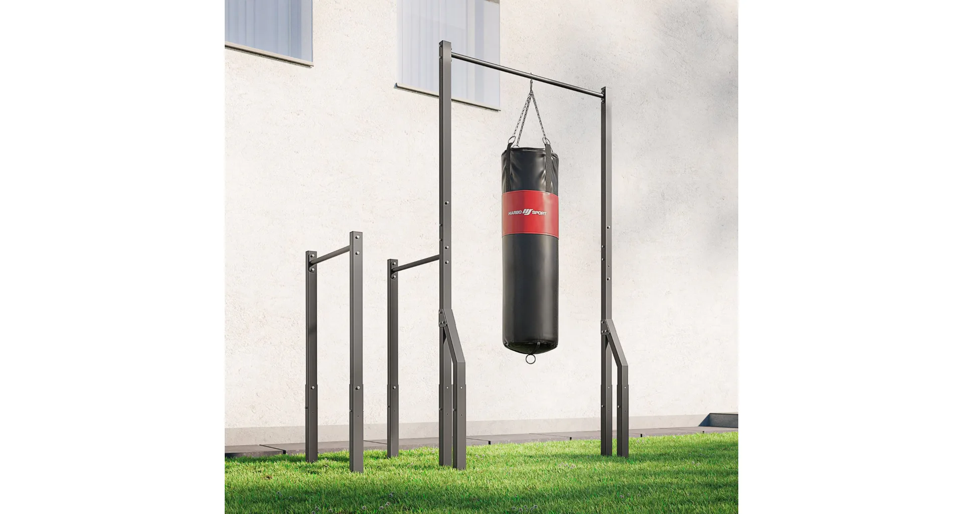 Marbo OUTDOOR je rad pre ľudí, ktorí si chcú vytvoriť vonkajšiu posilňovňu na mieru svojim tréningovým potrebám - profesionálnym aj amatérskym - a zároveň priestor pre vonkajšiu rekreáciu celej rodiny. Toto vybavenie sa bude skvele hodiť na záhradu, pozemok alebo inú zelenú plochu.
