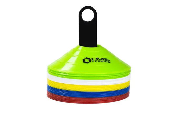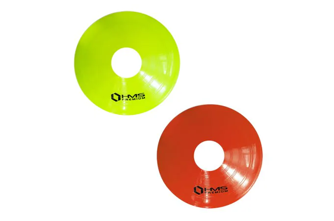 Vytyčovacie méty HMS 50 ks v balení, slúžia na vytýčenie dráh, ohraničenie priestoru alebo aj ďalších funkčných prvkoch vo všetkých športoch. Méty sú vyrobené z mäkčeného plastu, odolného proti prešliapnutiu.