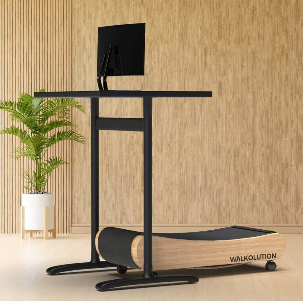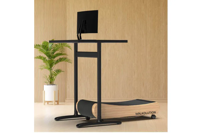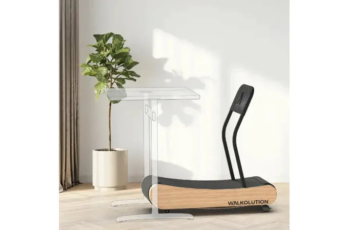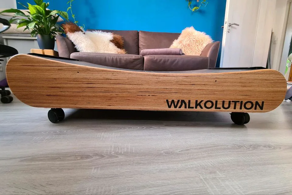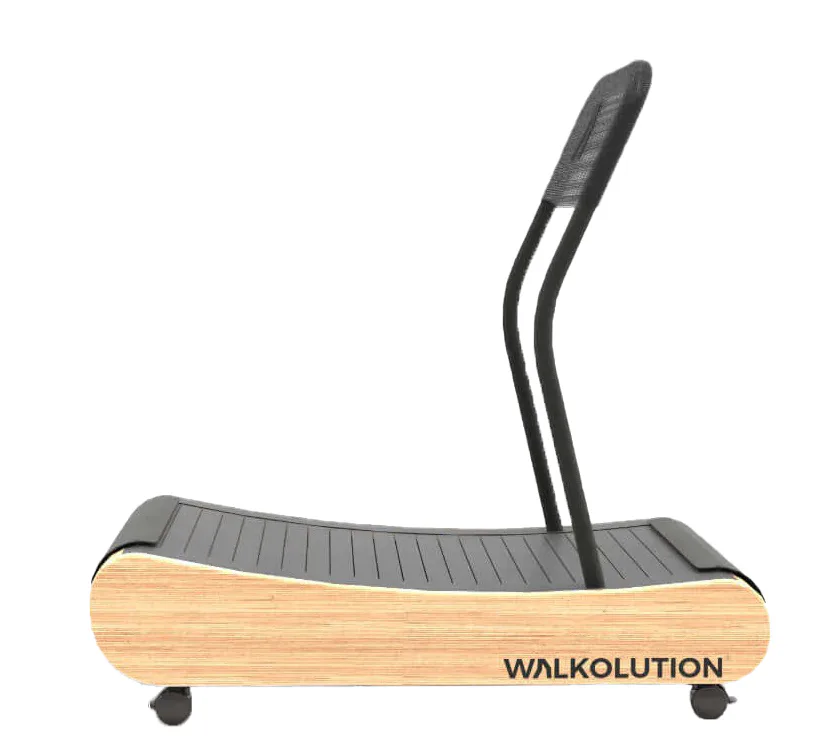 Designově nadčasový bezmotorový pás MT300 New Work od značky WALKOLUTION má vyhlazený, zakřivený design rámu z luxusního masivního bukového dřeva a oceli. Díky zakřivenému tvaru poskytuje stroj velmi přirozený pocit při běhu na prostorné běžecké ploše (47 x 140 cm) a navíc je velmi šetrný ke kloubům.